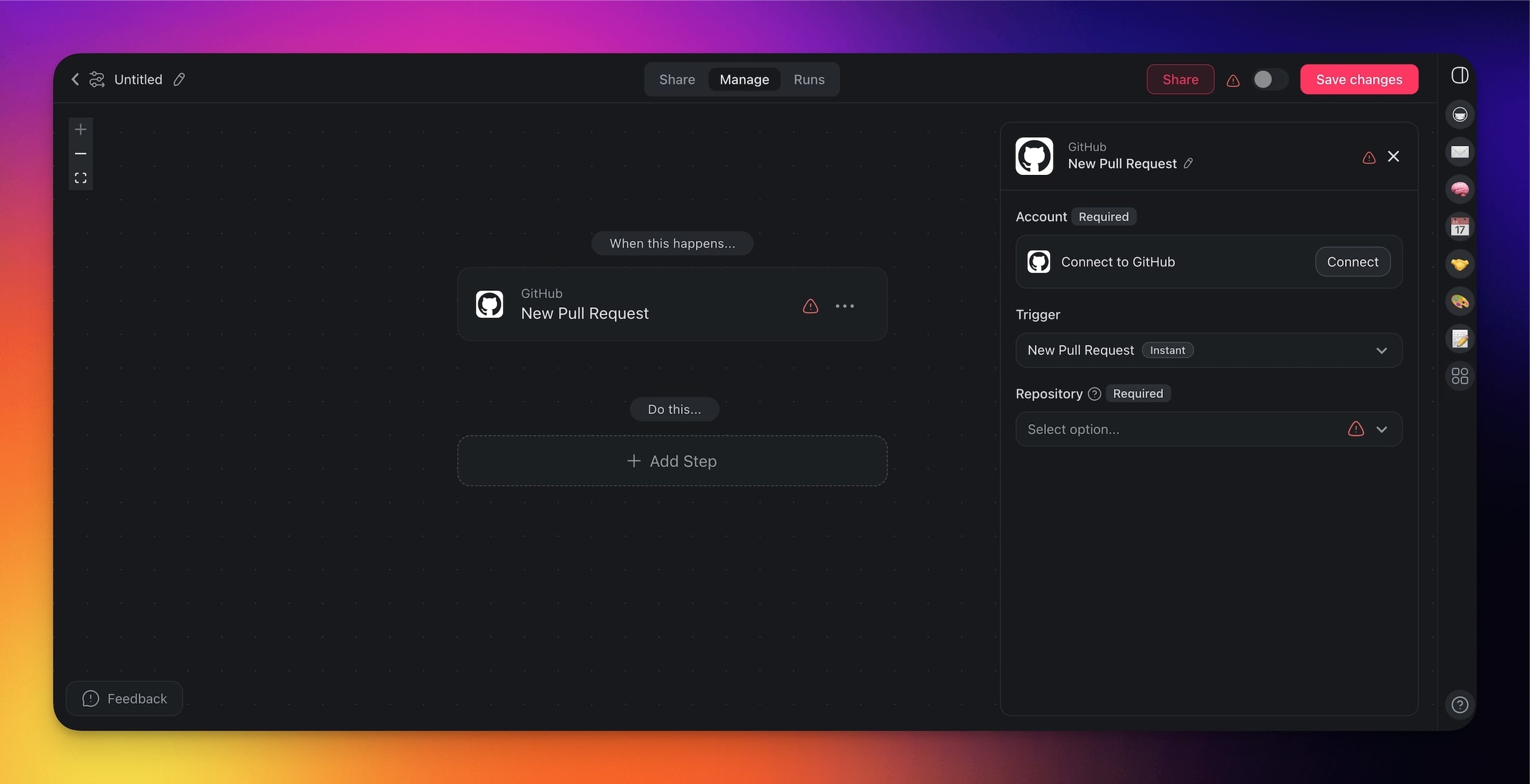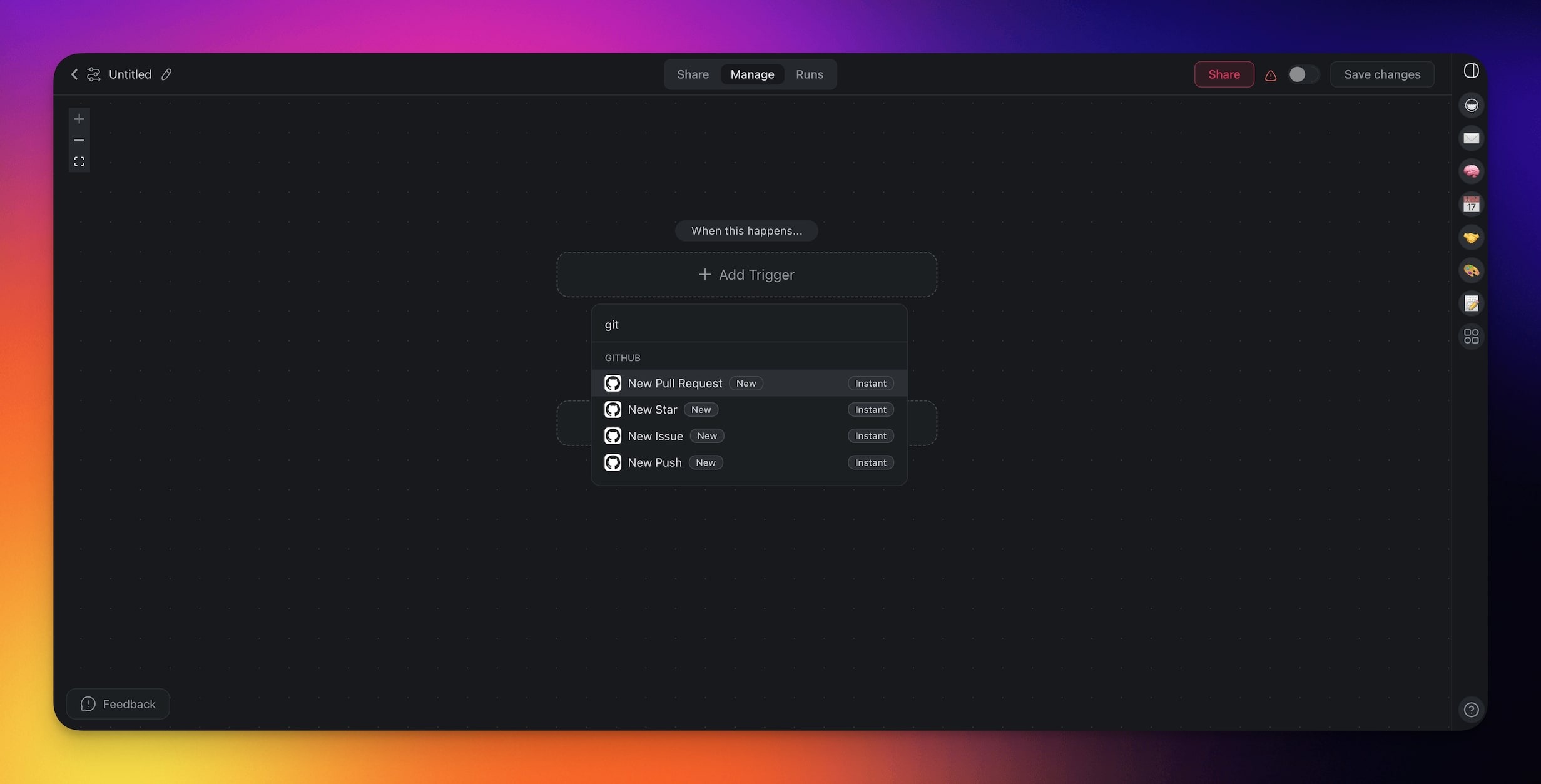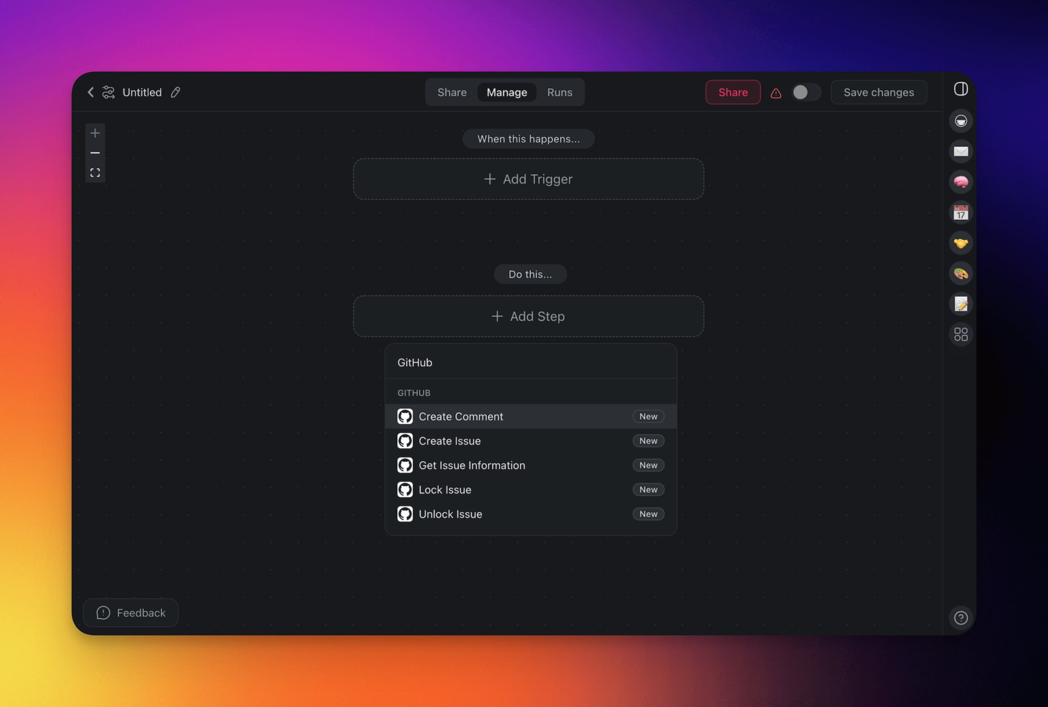 - Add GitHub as an action/trigger (see the next section).