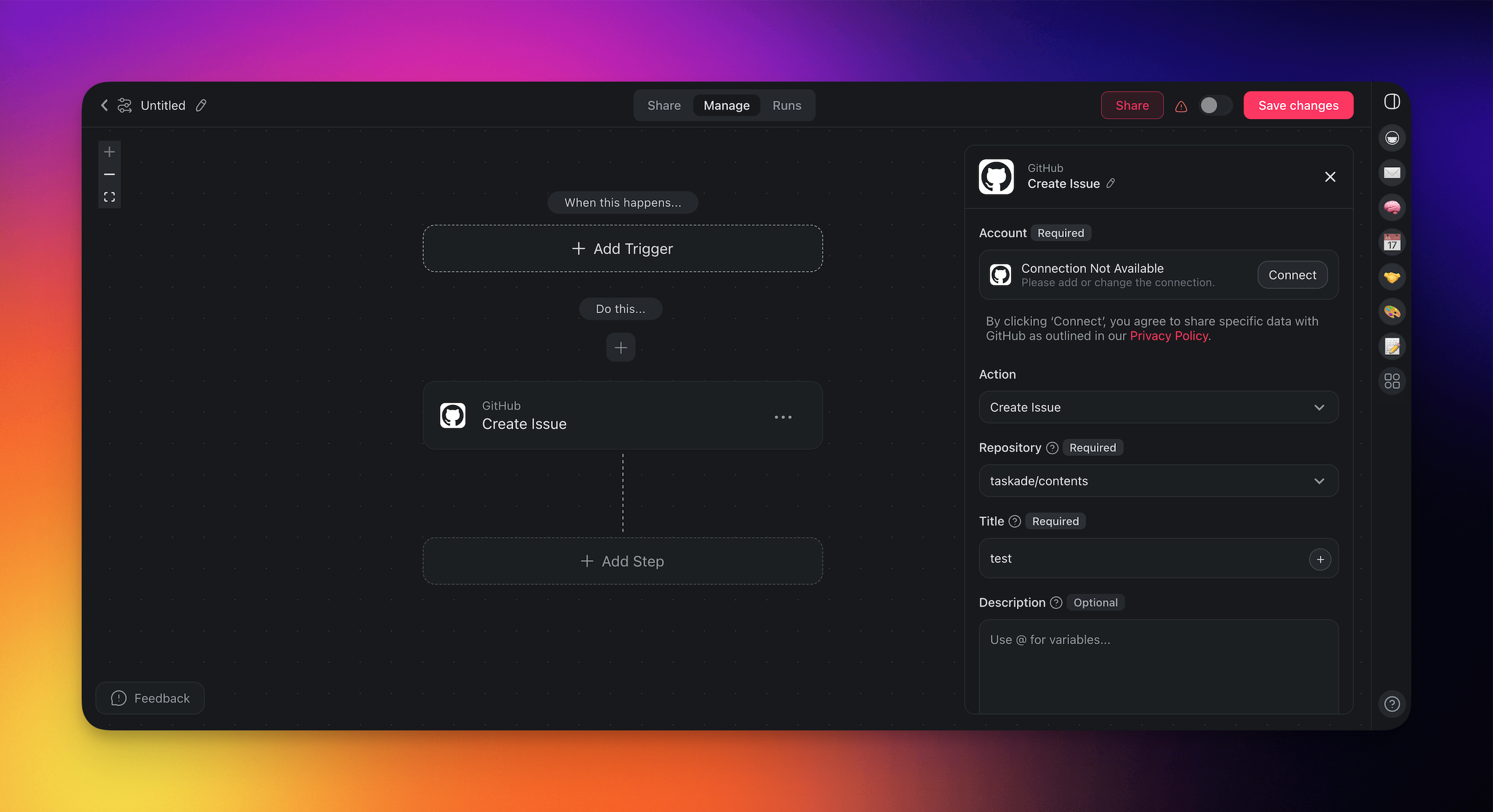 Before you start using GitHub in Taskade, you need to configure the integration: