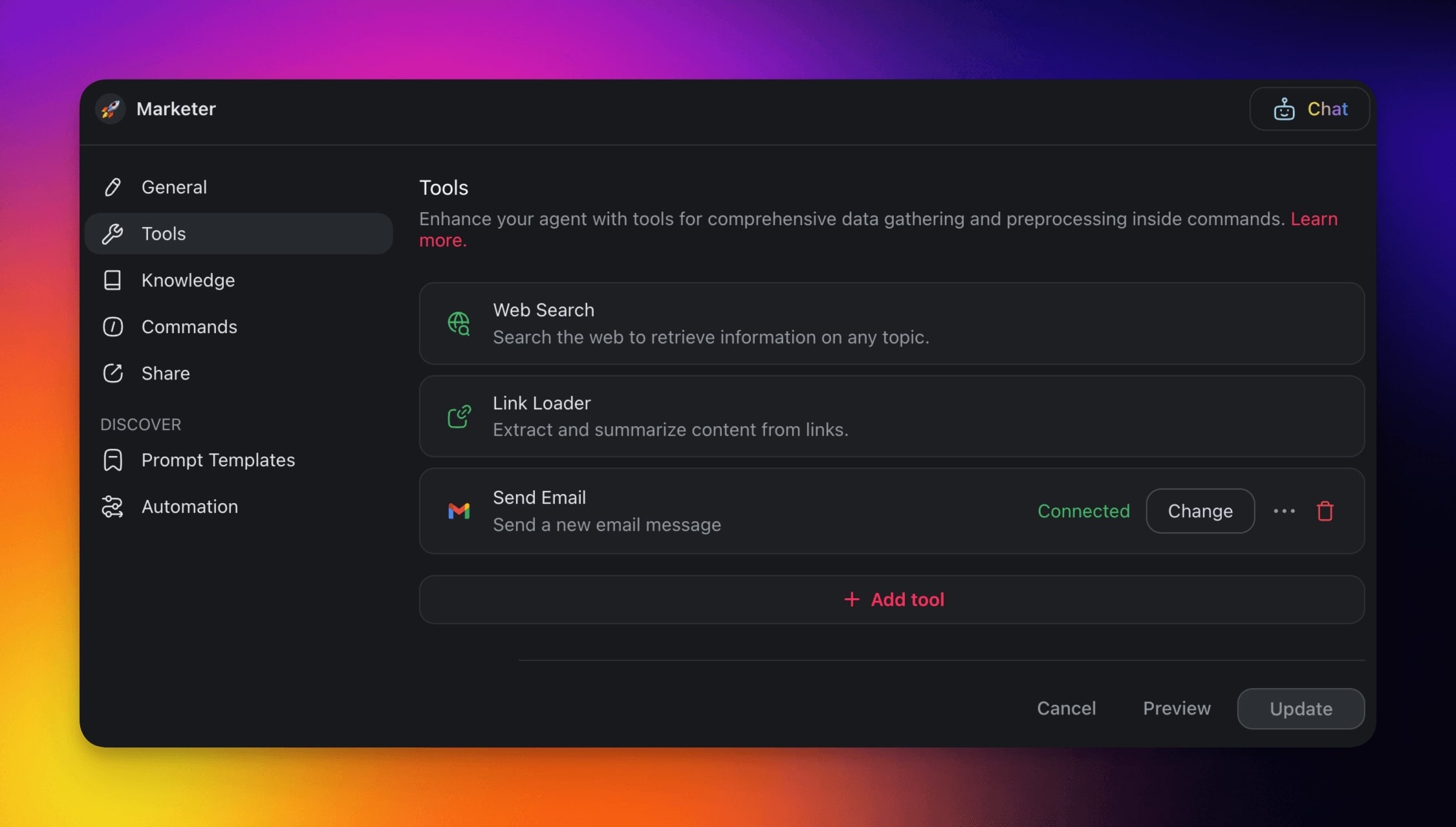 Connecting your Custom AI Agents with Gmail gives them the ability to send emails and seamlessly links your email communication with your tasks and projects.