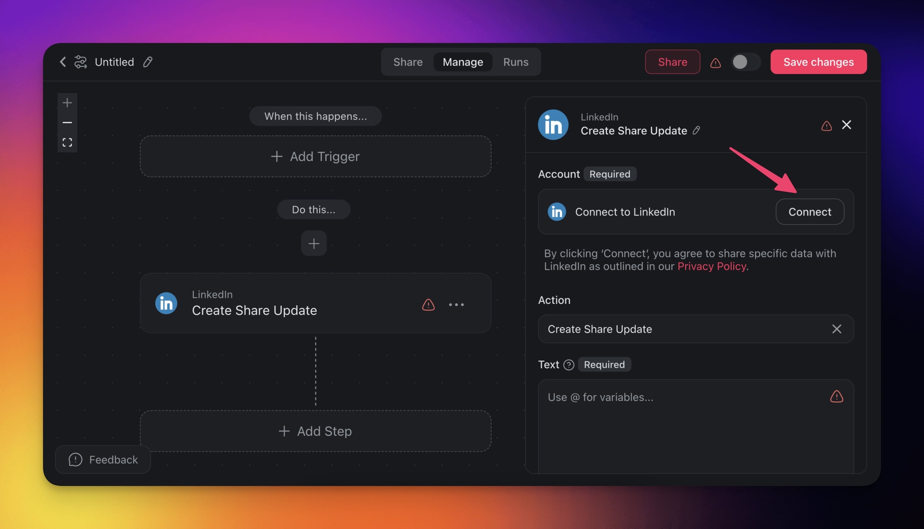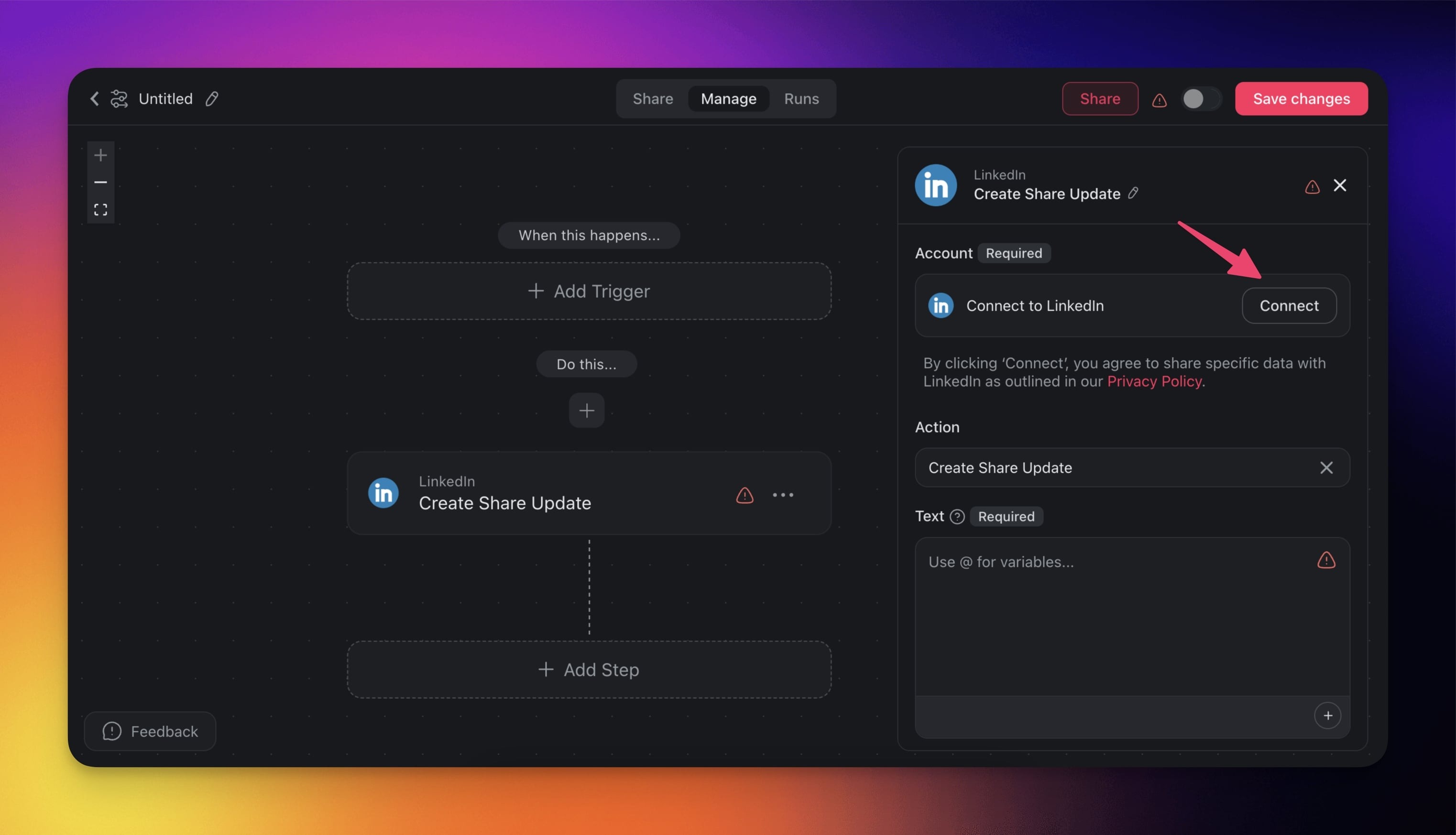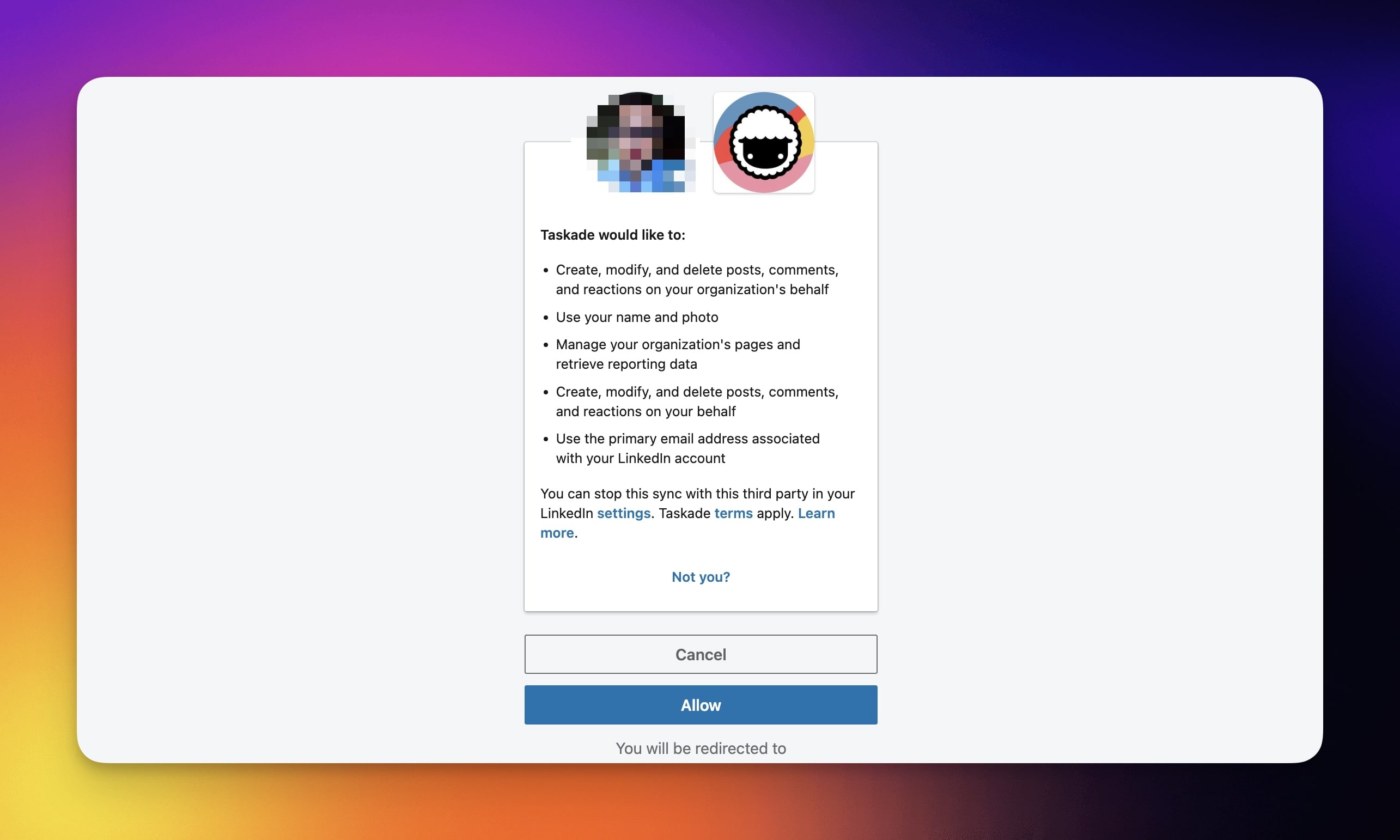 Before you start using LinkedIn in Taskade, you need to configure the integration: