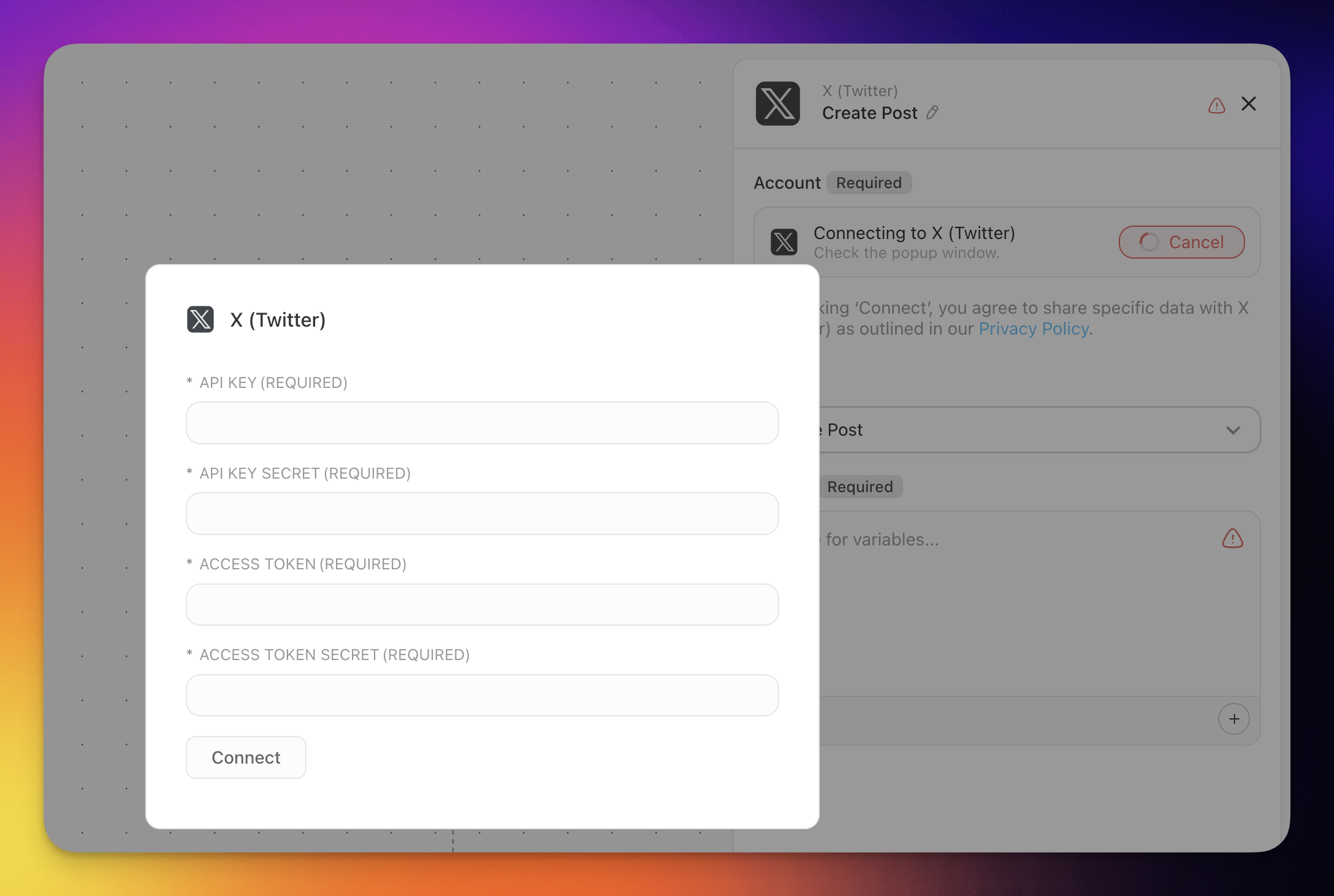 | Create Post | Automatically creates a new post on X/Twitter from a specified account. |