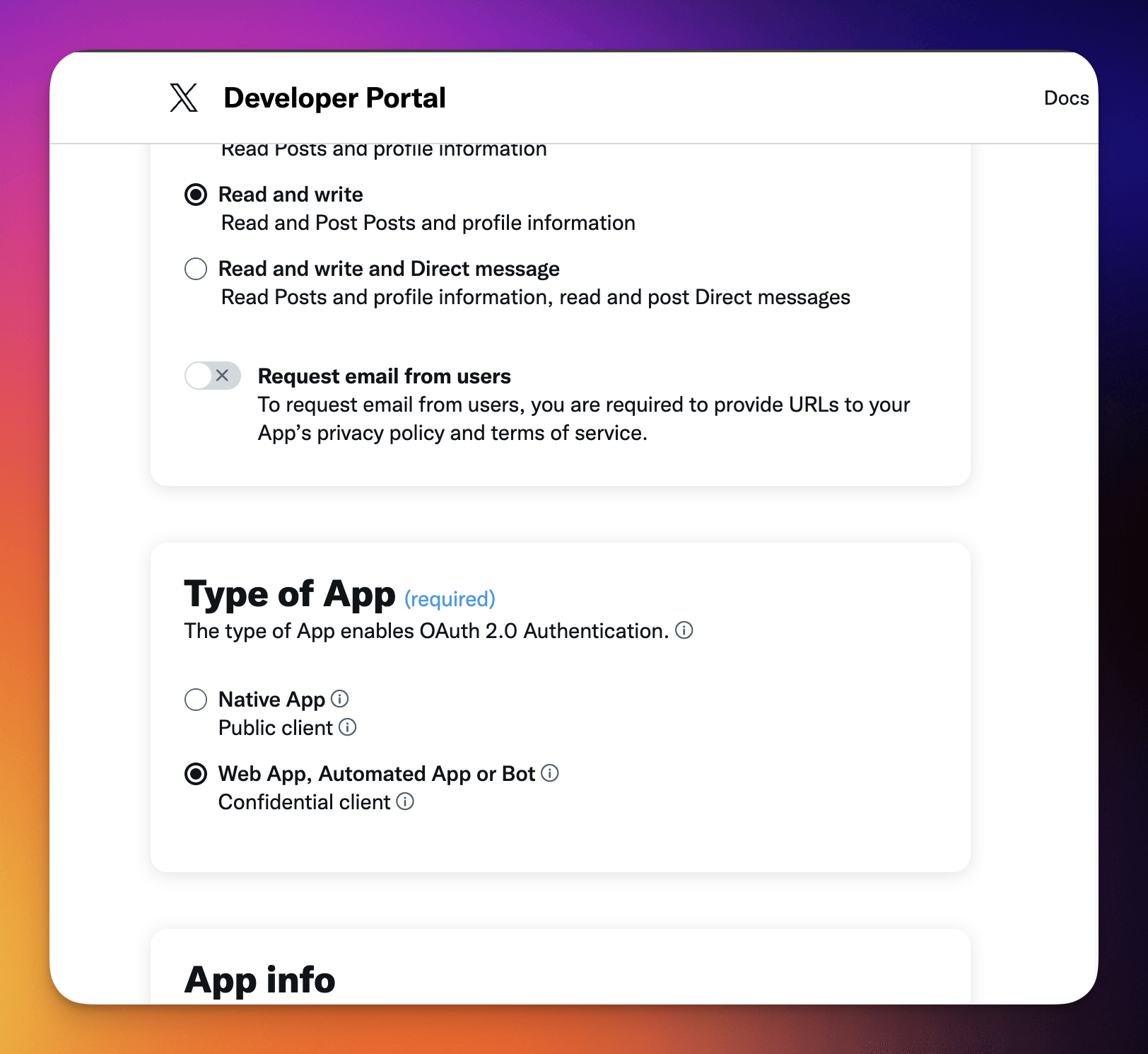 - Go to https://developer.x.com/en/portal/petition/essential/basic-info?plan=basic.