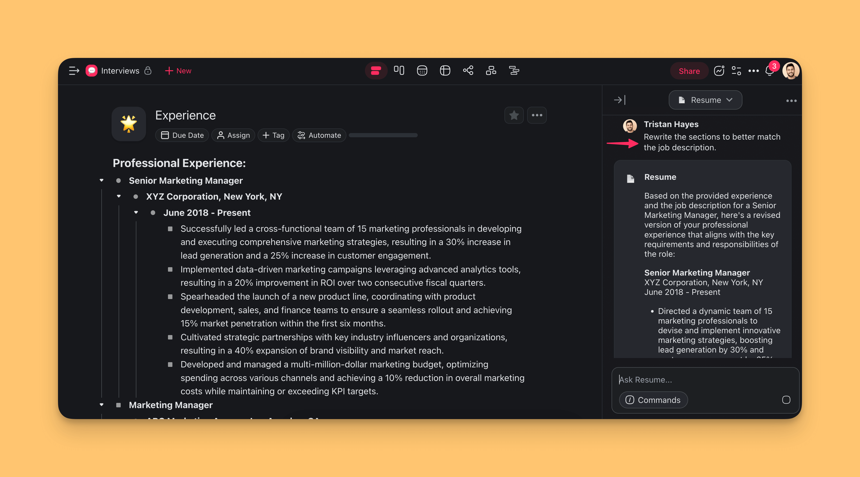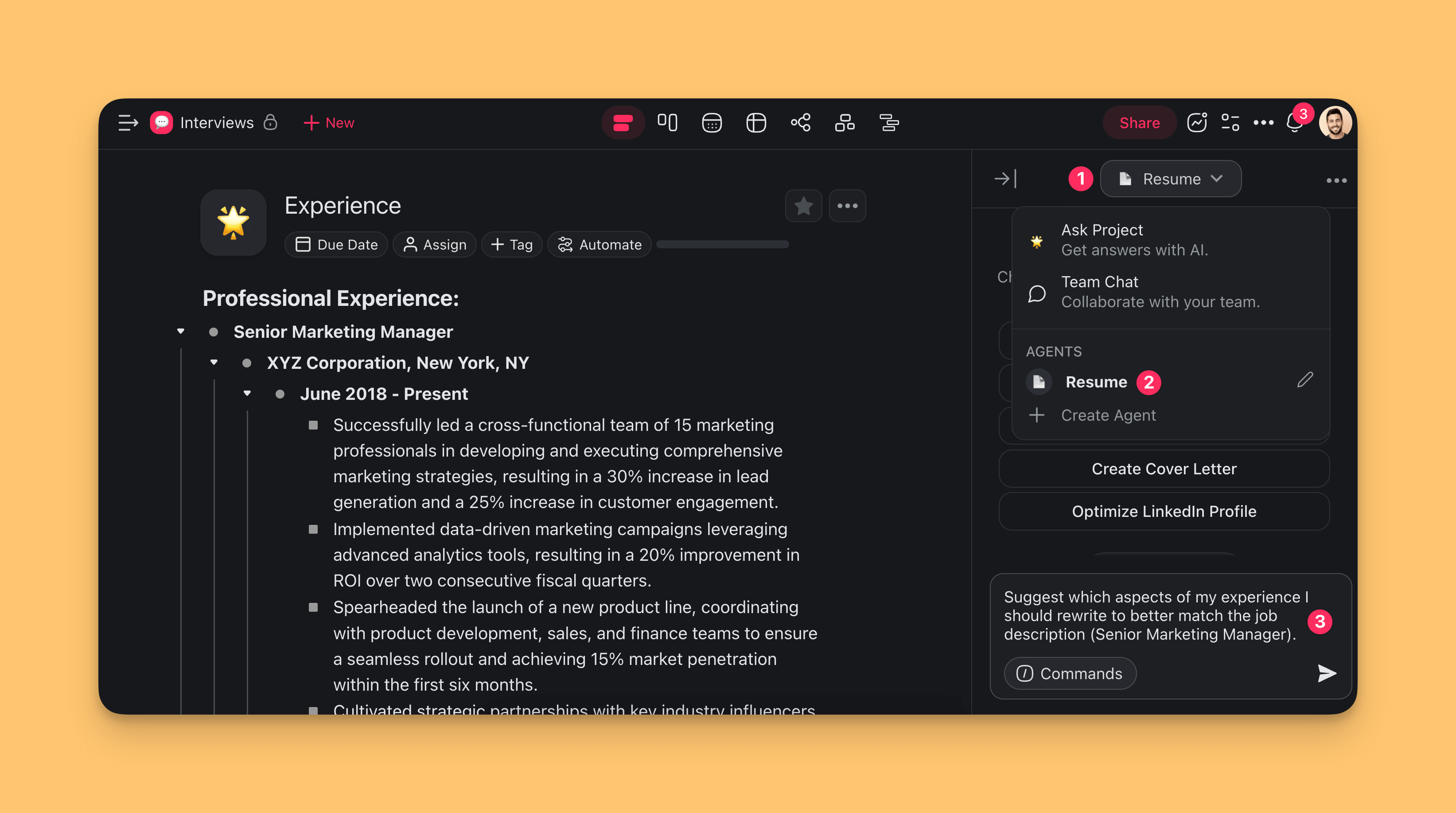 You can also ask the agent to rewrite some of your accomplishments to save time.