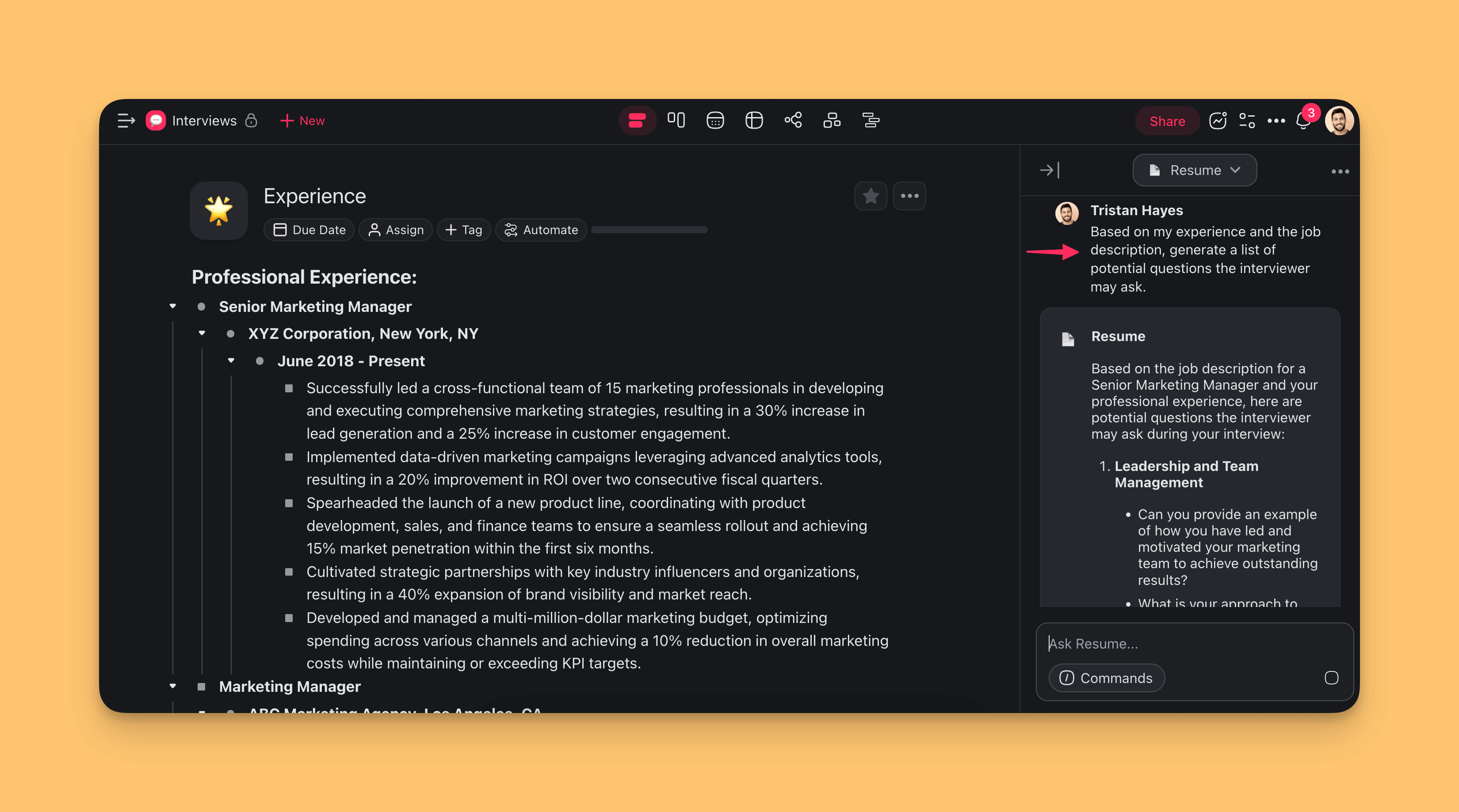 The interviewer may ask you a series of follow-up questions to conclude the interview. Ask the Agent to generate a series of questions based on the job description.