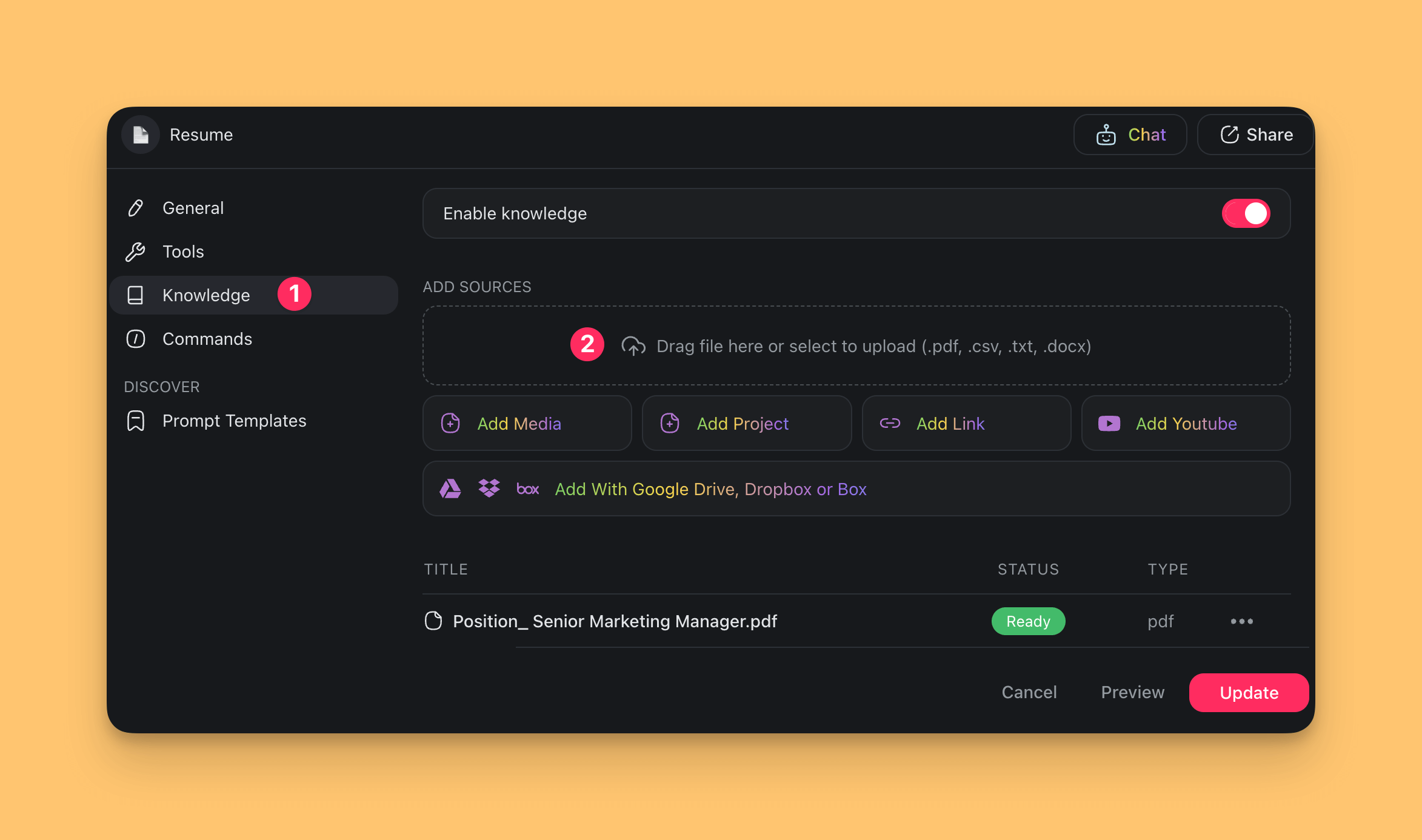 Each agent is pre-trained on generic data. We need to develop the knowledge base of our ๐ Resume agent using the description of the job you're applying for.