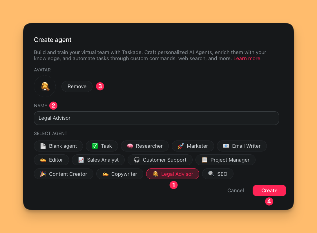 In this guide, we'll show you how to use Taskade's Custom AI Agents in your legal practice. You'll learn what agents are and how they can help you: