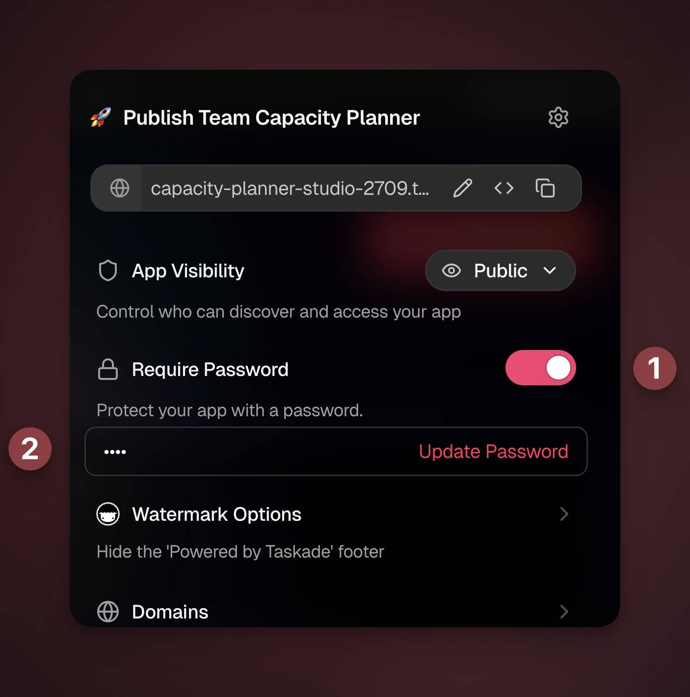Control whether the โPowered by Taskadeโ footer appears (plan dependent).