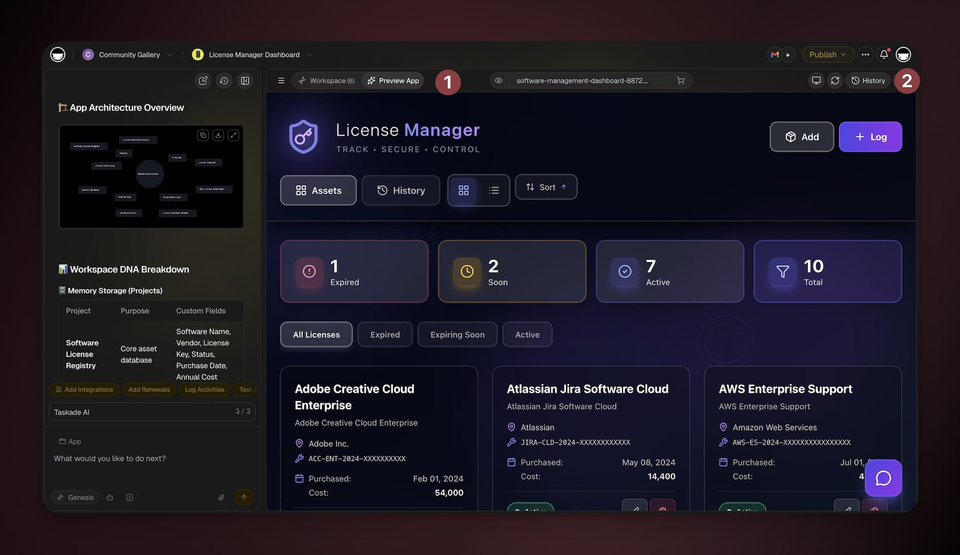 - Open your Taskade Genesis app → go to the Preview App tab.