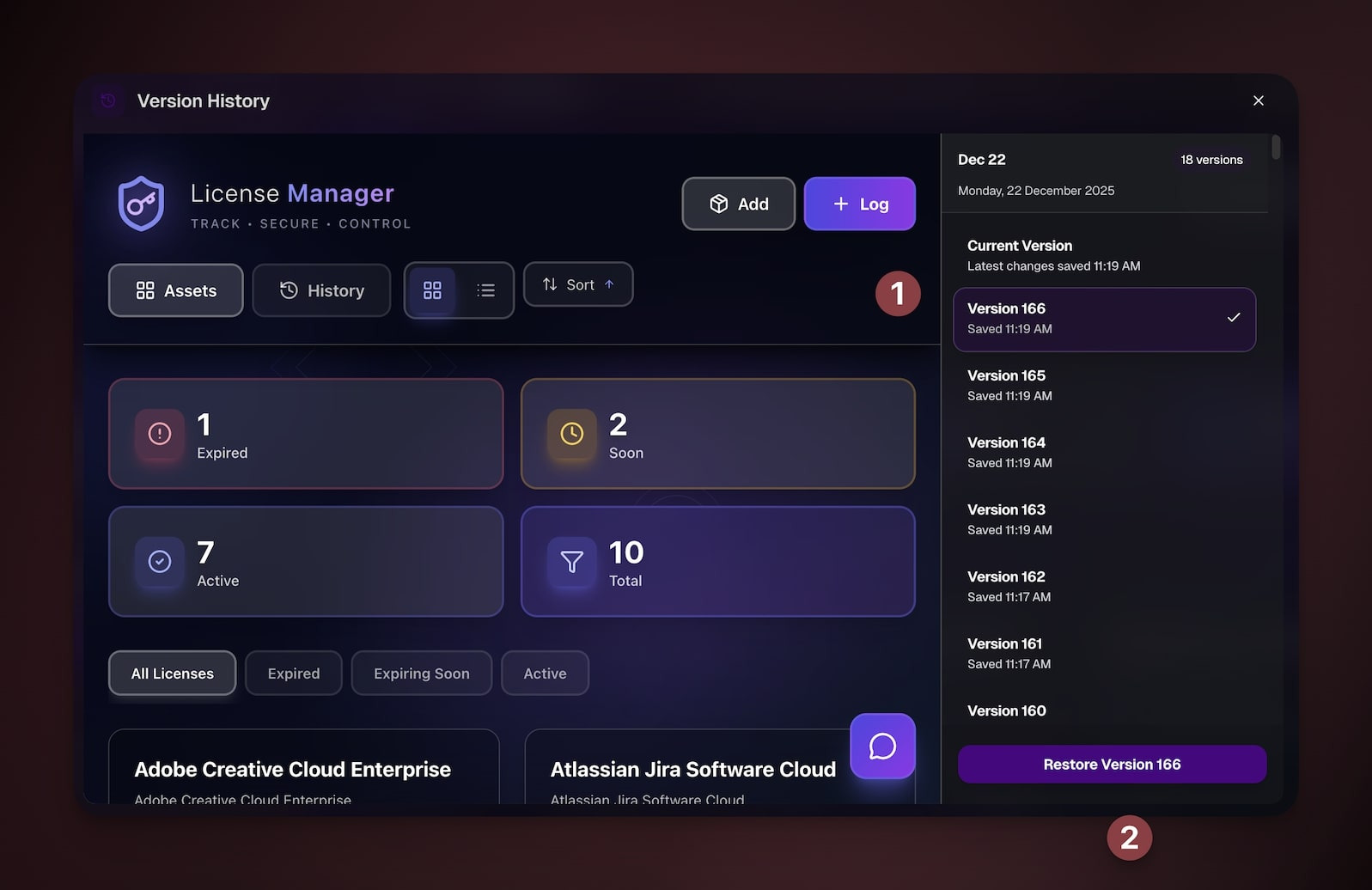 - Choose the version of your app your want to restore.