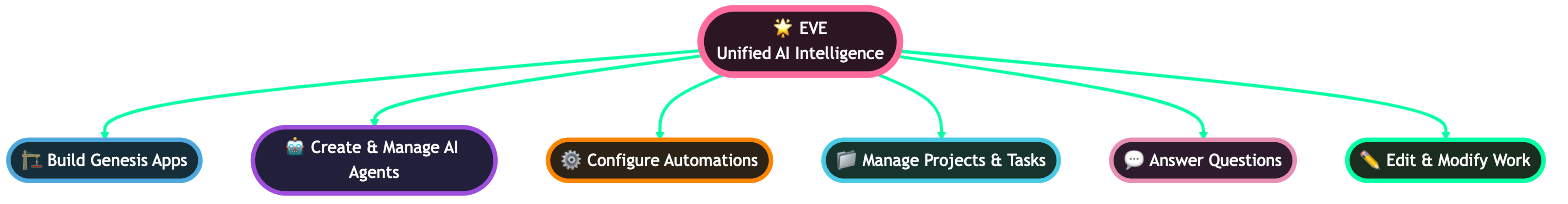 EVE is the central AI system that powers everything in Taskade. It's the living consciousness that connects Memory, Intelligence, and Action into a unified whole.