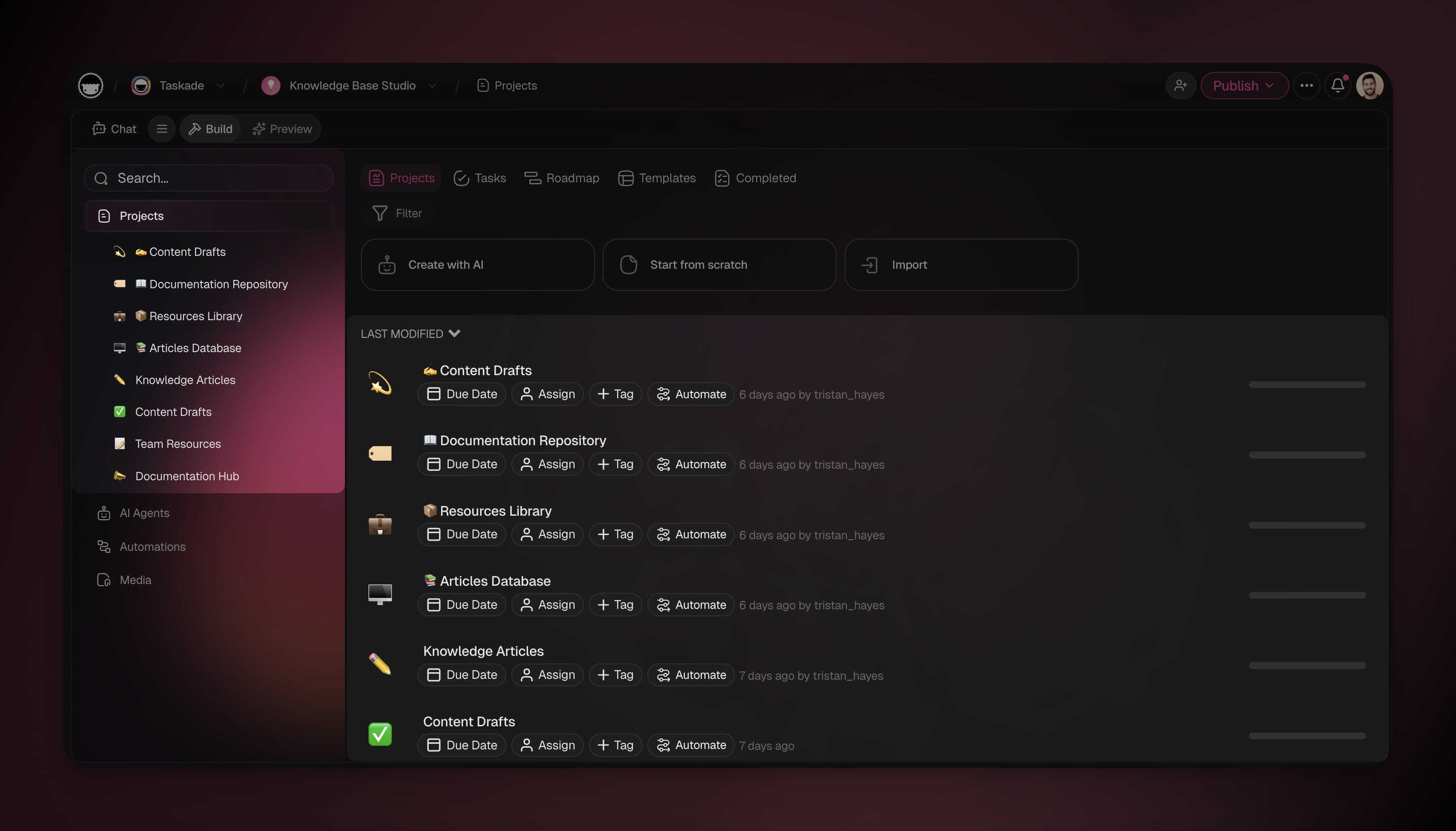 Taskade EVE can directly create, modify, and orchestrate everything in your workspace.