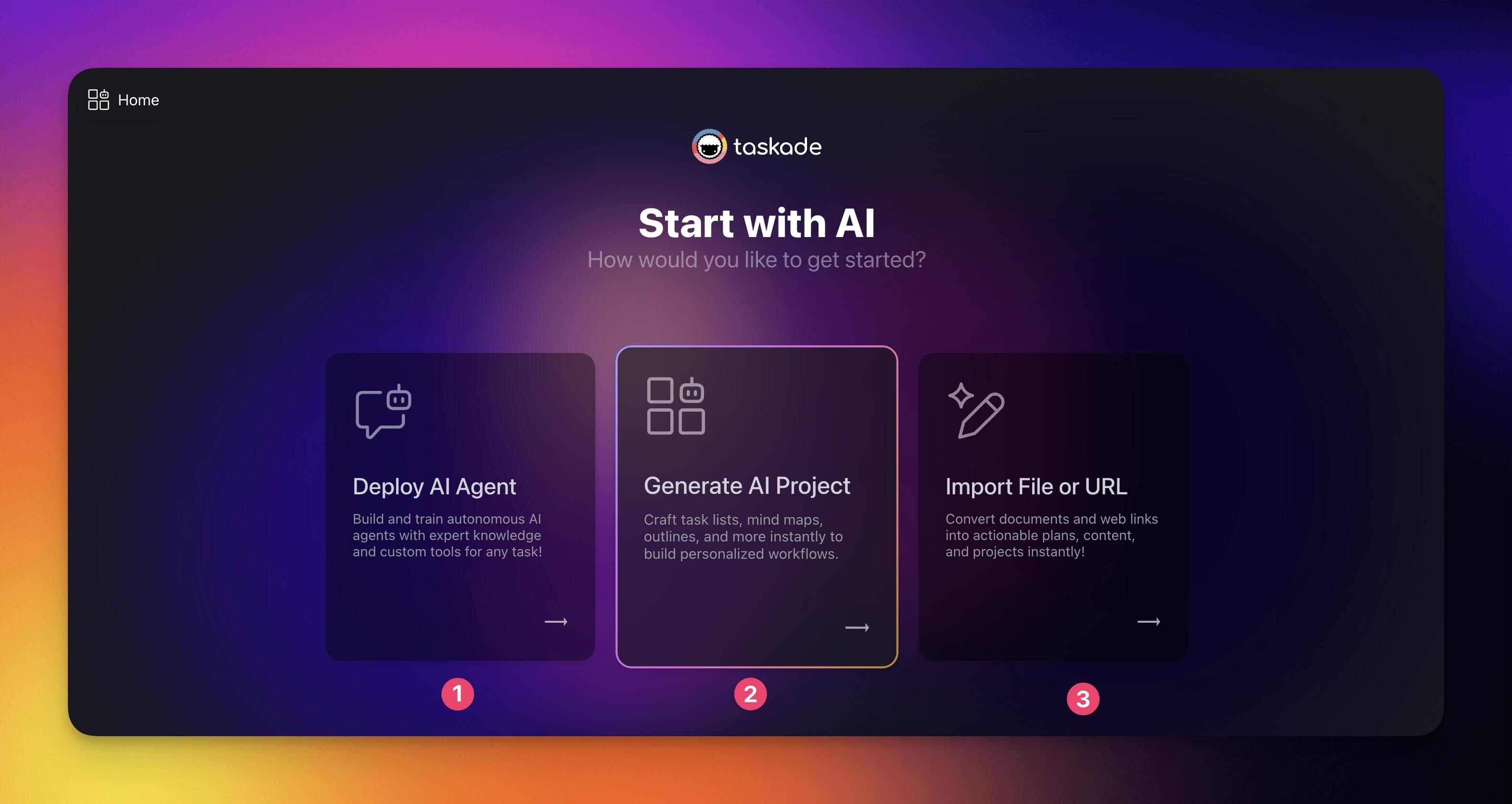 New to Taskade? You can instantly birng your projects into Taskade in three steps: