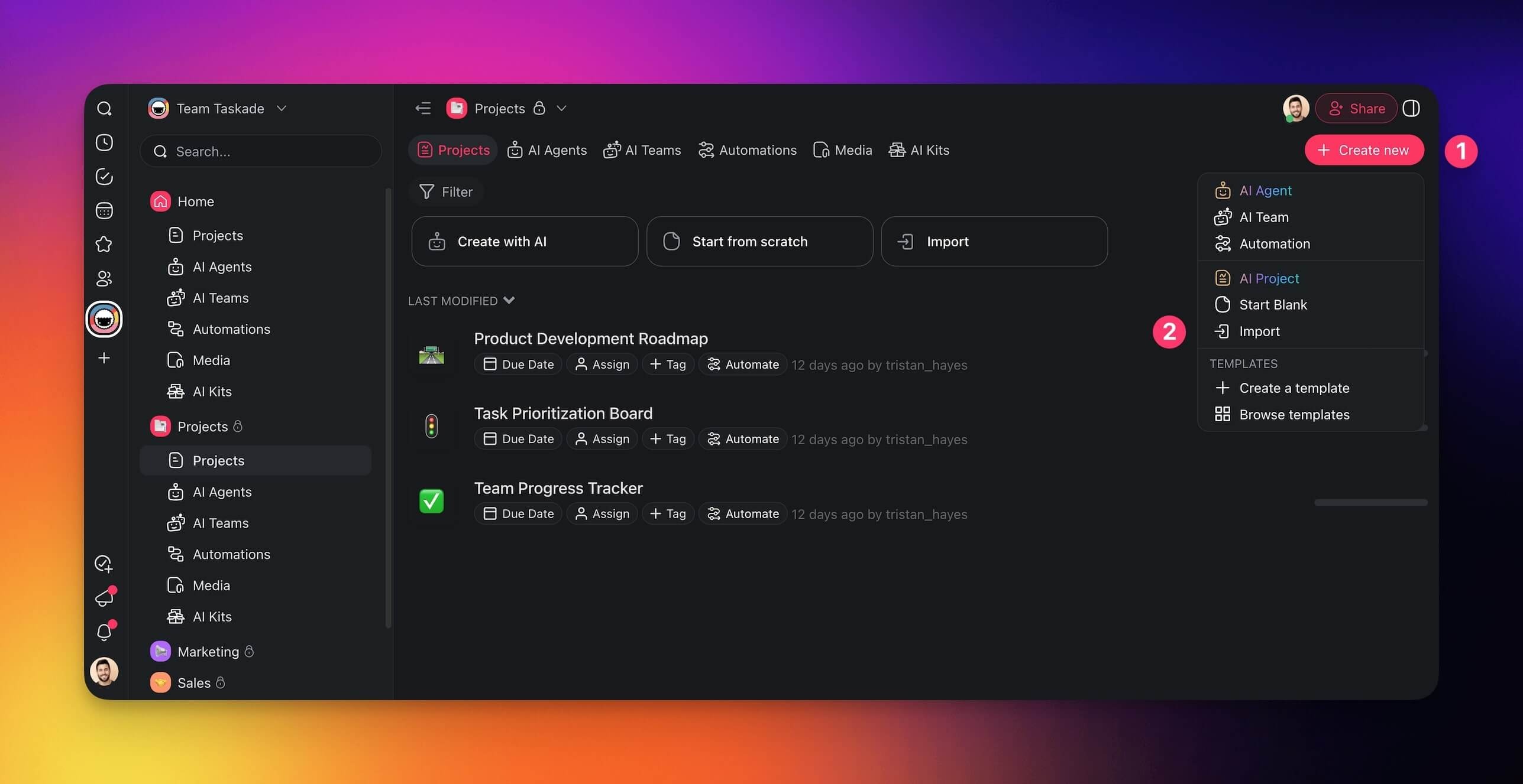Click ➕ Create new ➡ AI Project.