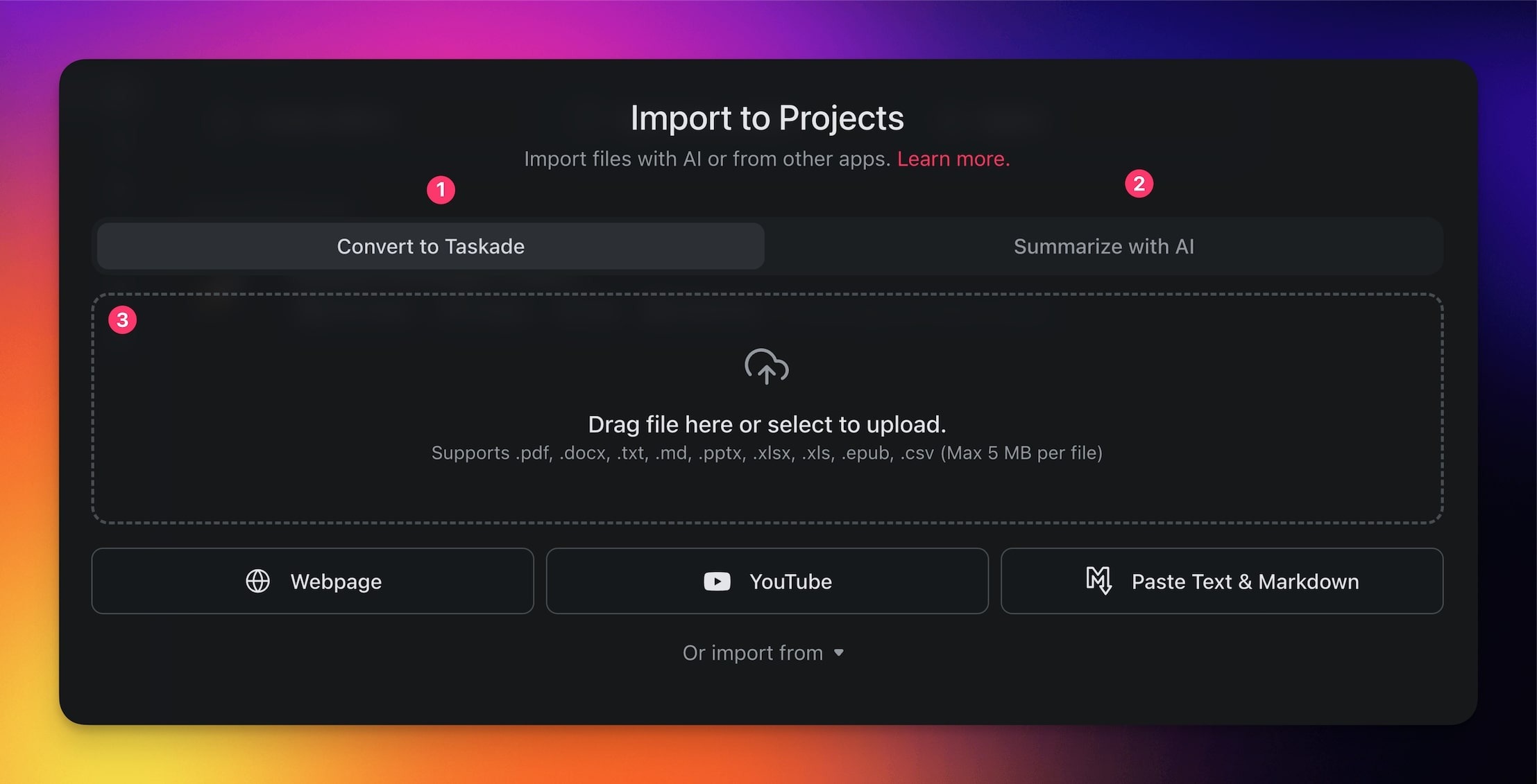 ๐ก Note: Visit Convert to Taskade & Summarize with AI to learn more.