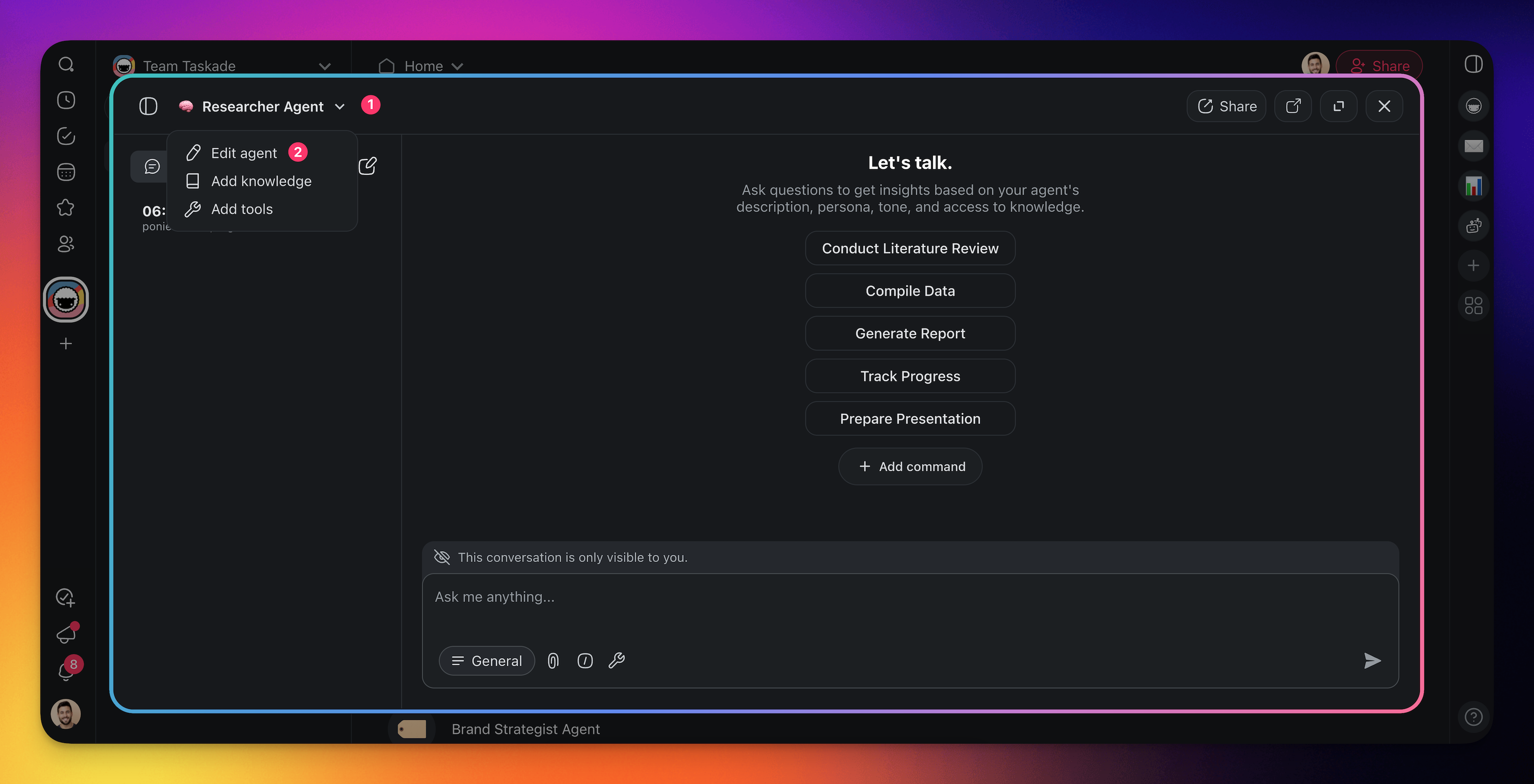 ๐ก Note: Visit Agent Knowledge & Data to learn more.