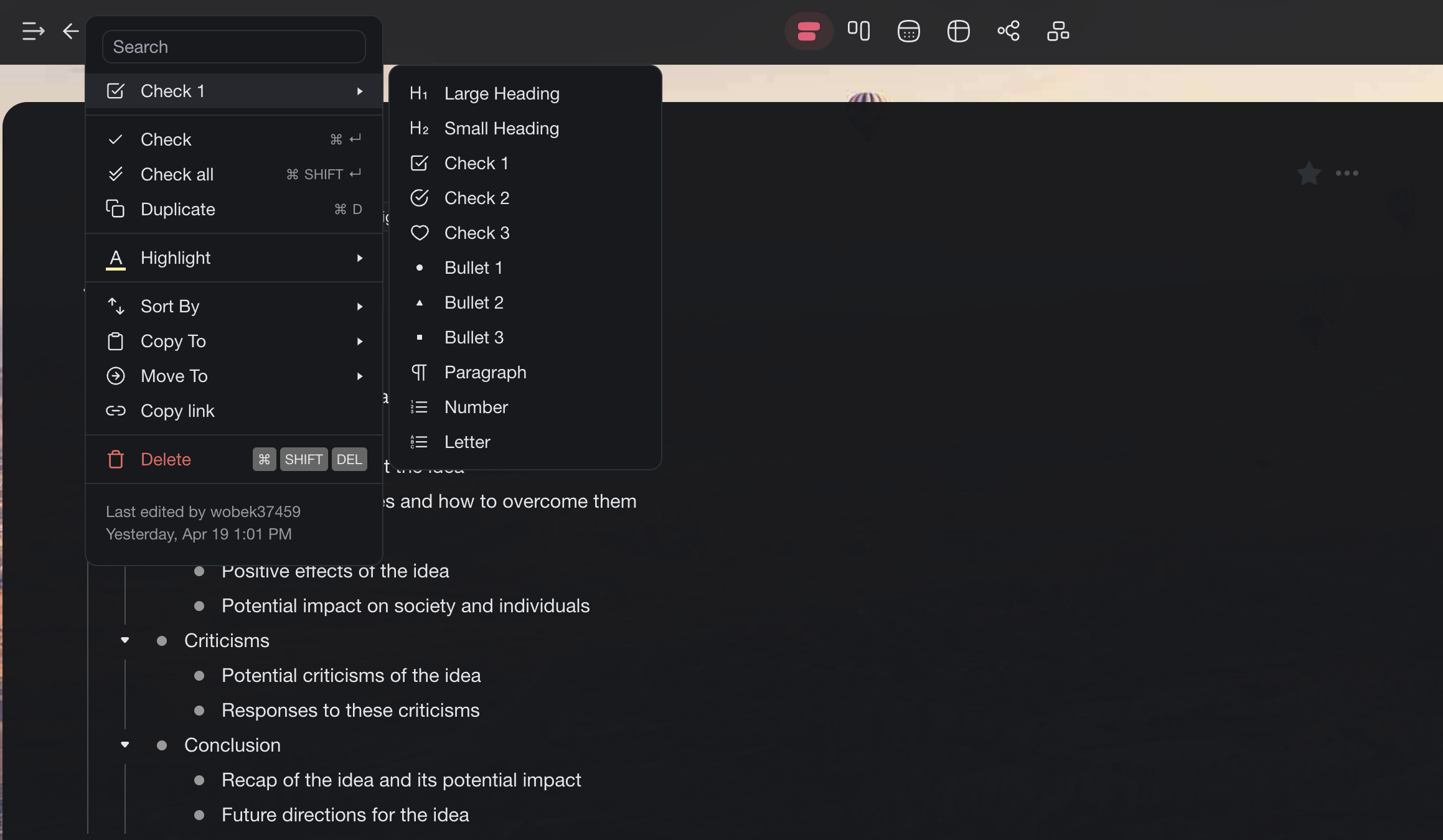 💡 Note: Don't forget to customize tasks and sub-task inside Blocks! Visit Editing & Formatting Projects to learn more about task formatting options in Taskade.