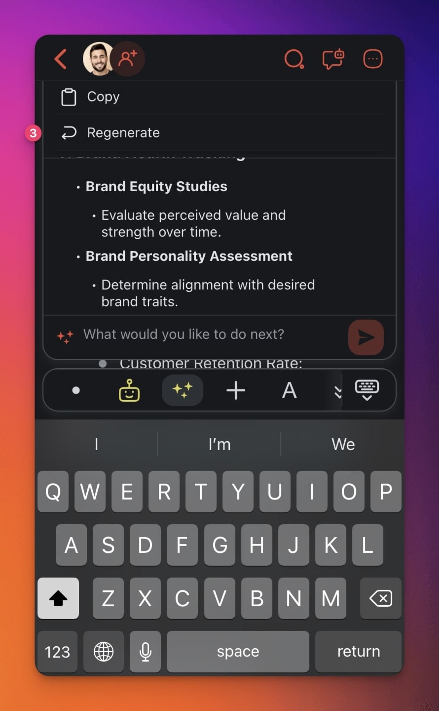 Don't like what you see? Tap (3) Regenerate to start over.