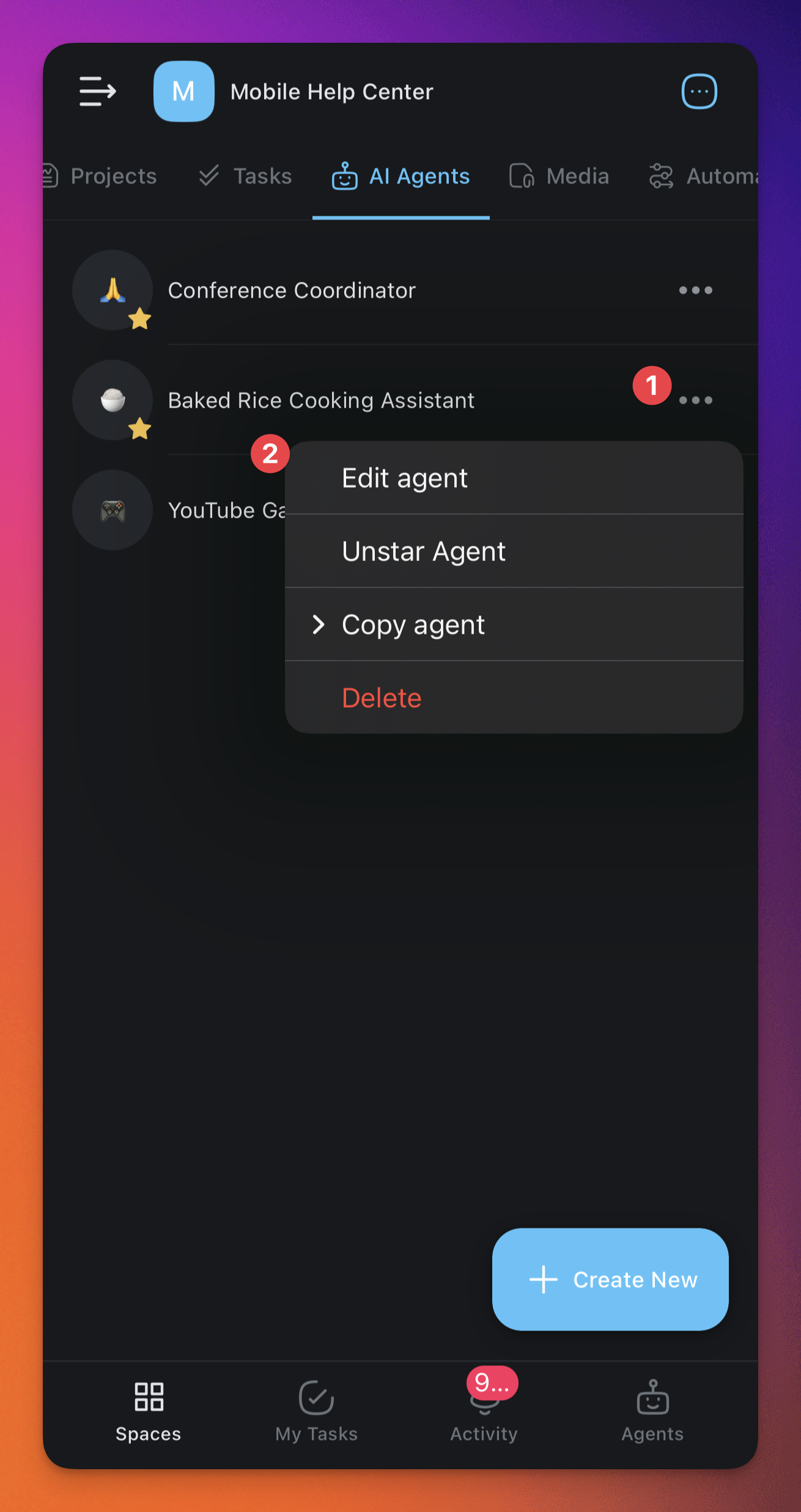 Tap the three dots ยทยทยท next to the agent you want to edit.