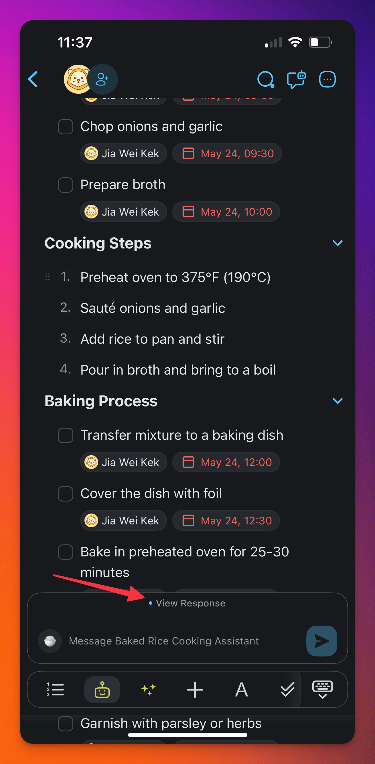 4. Once the AI is done generating a response, tap on View Response.