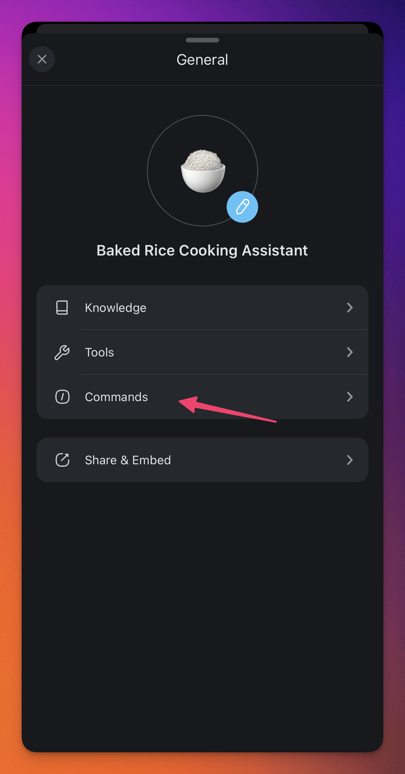 To create or edit existing commands: