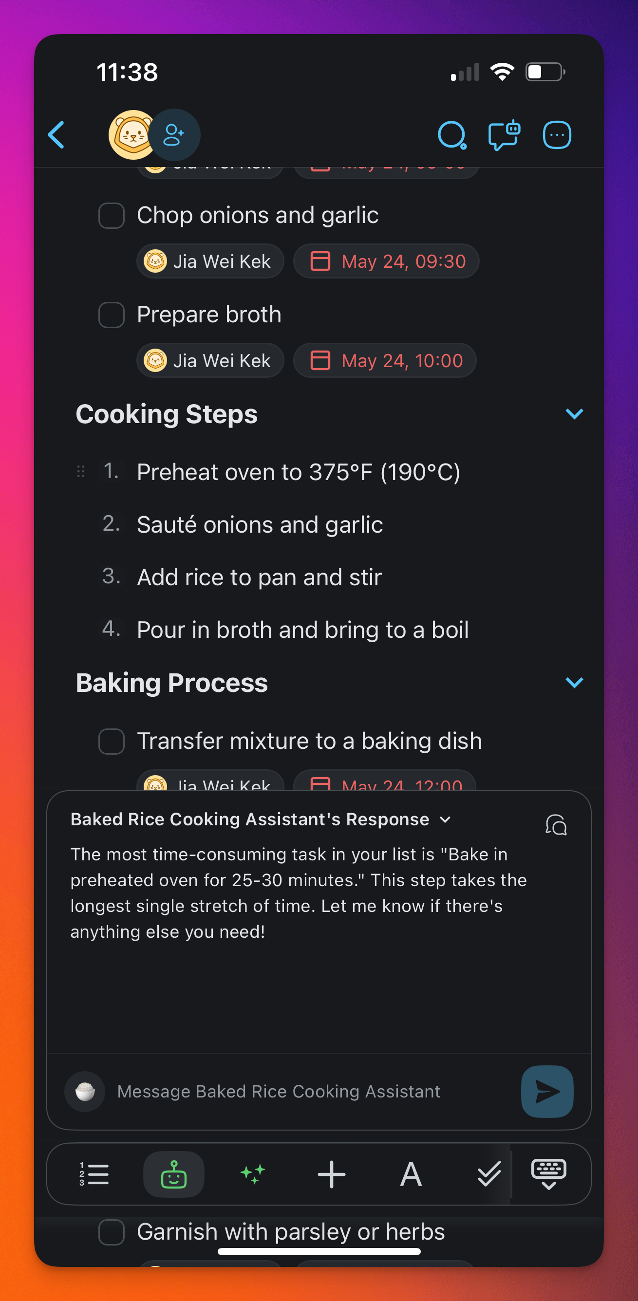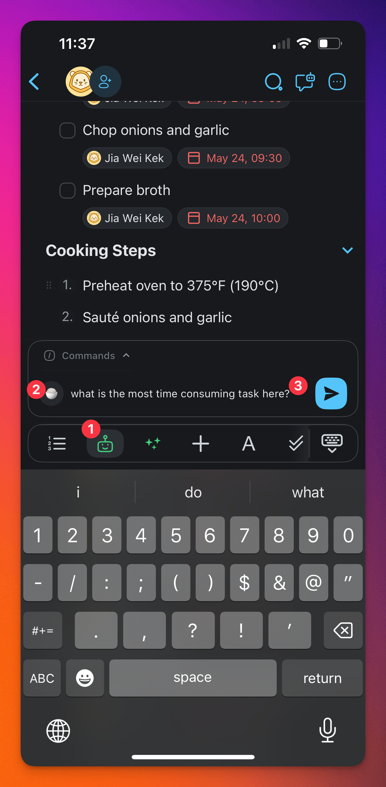 - Select a task and tap the robot icon ๐ค in the toolbar.