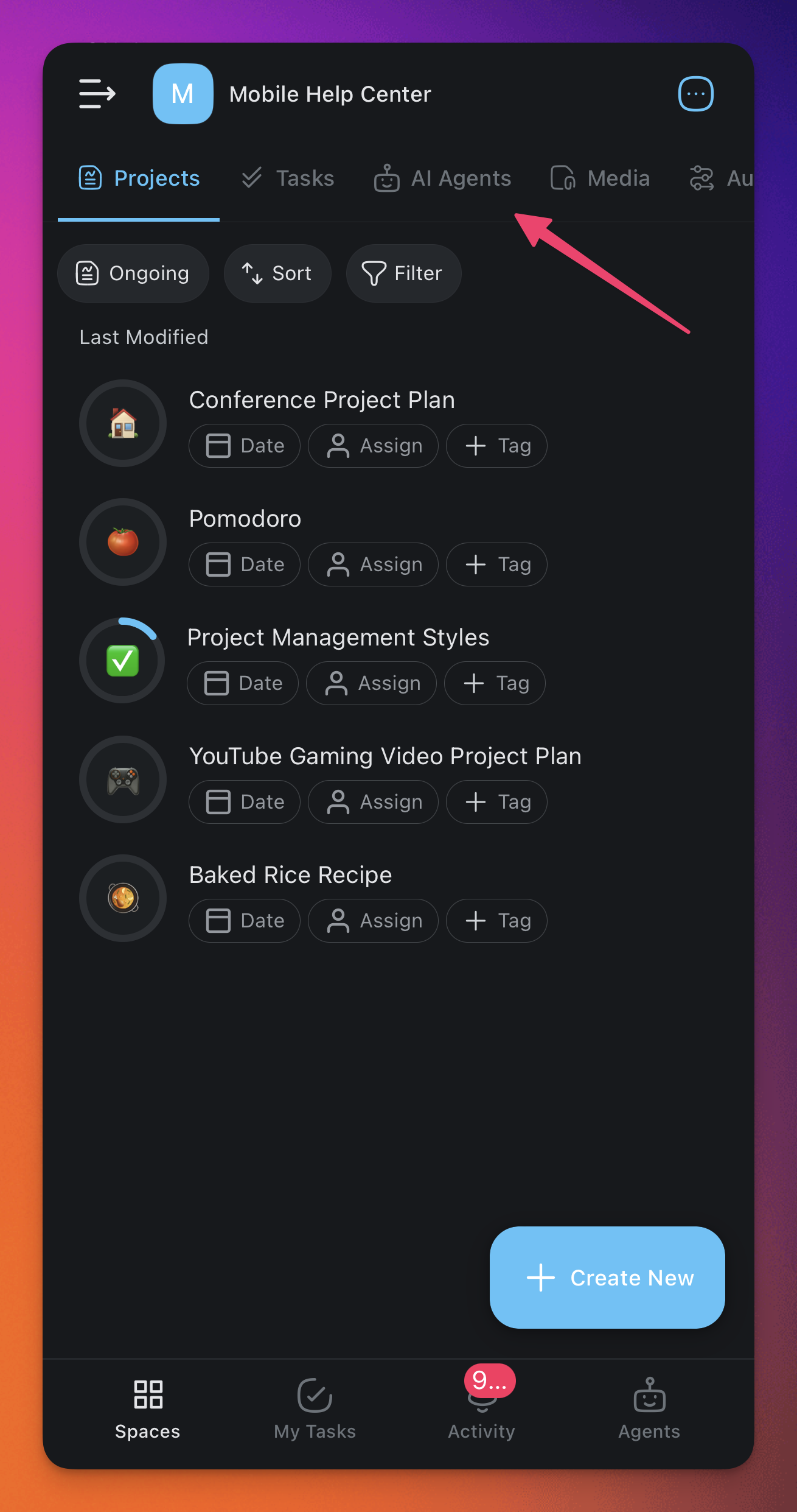 Go to the ๐ค Agents tab in your workspace/folder.