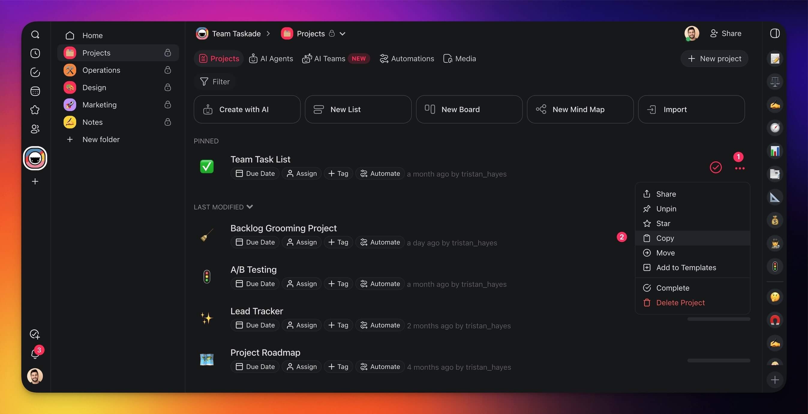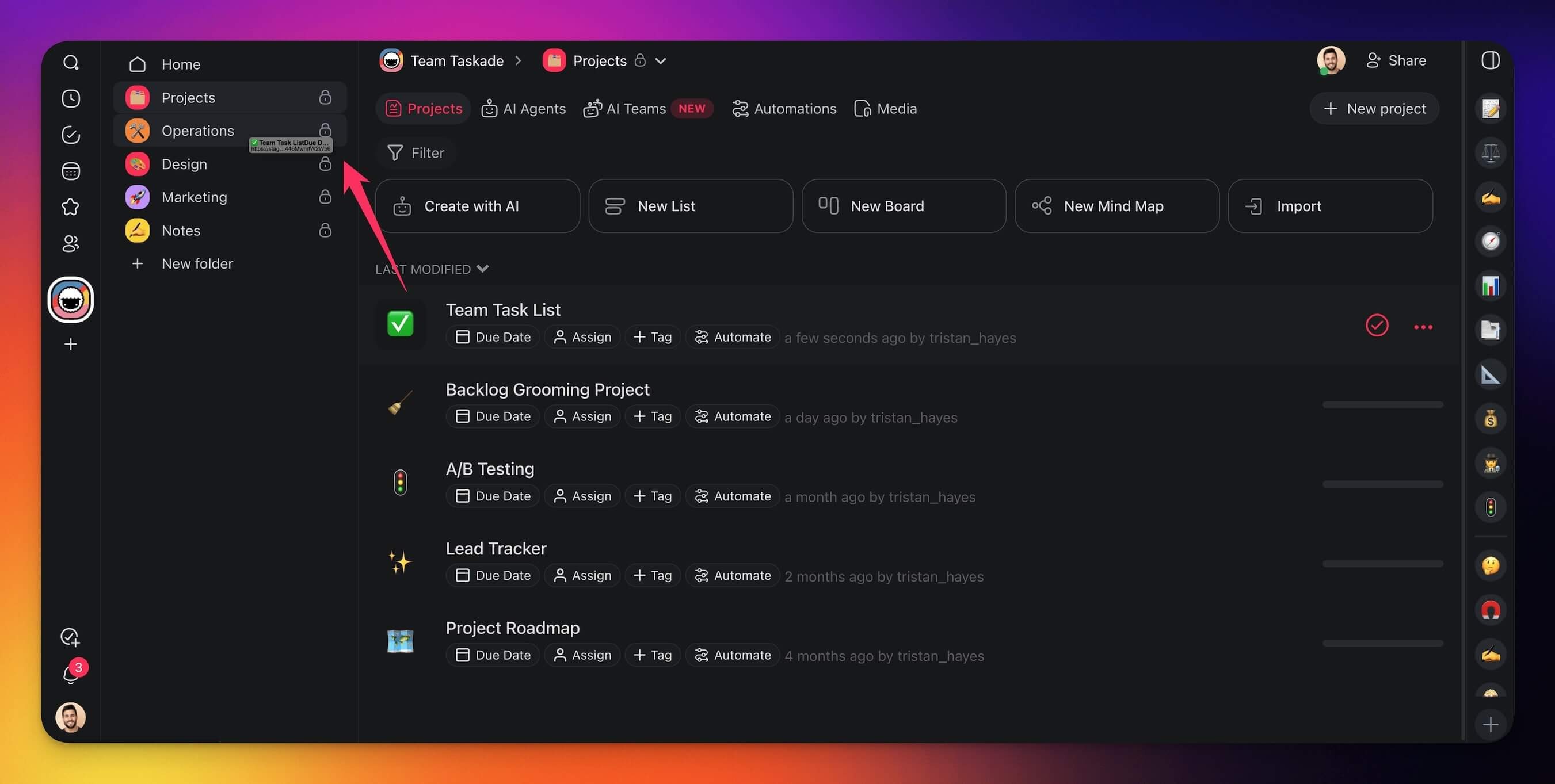 - Drag the project to a workspace/folder in the sidebar on the left.