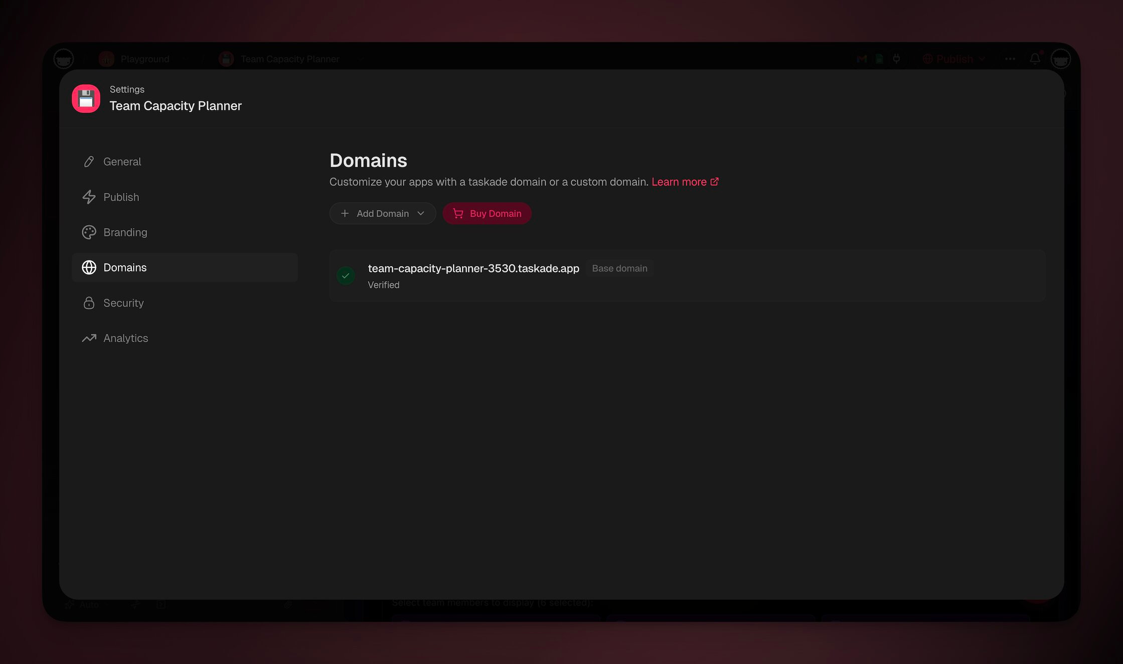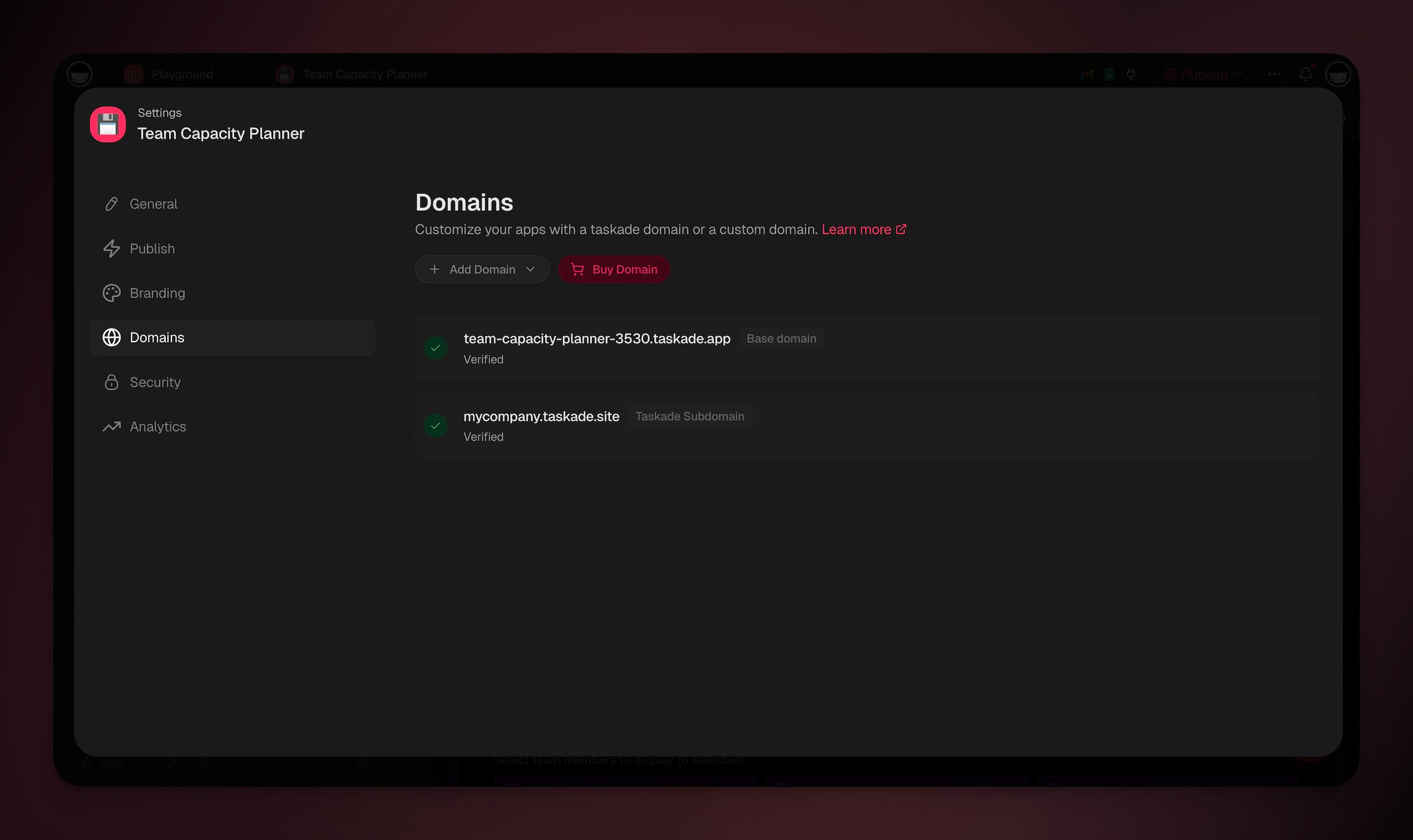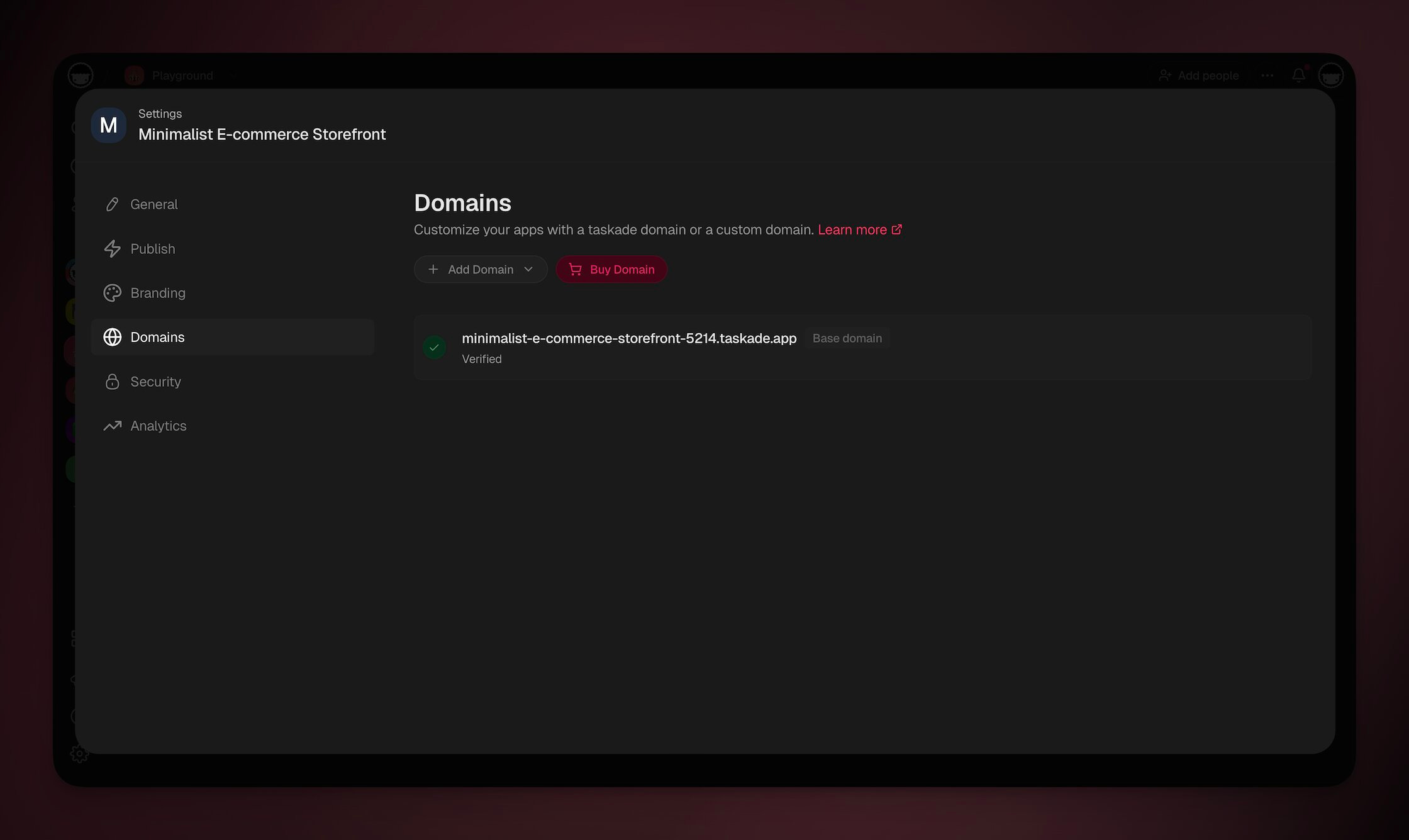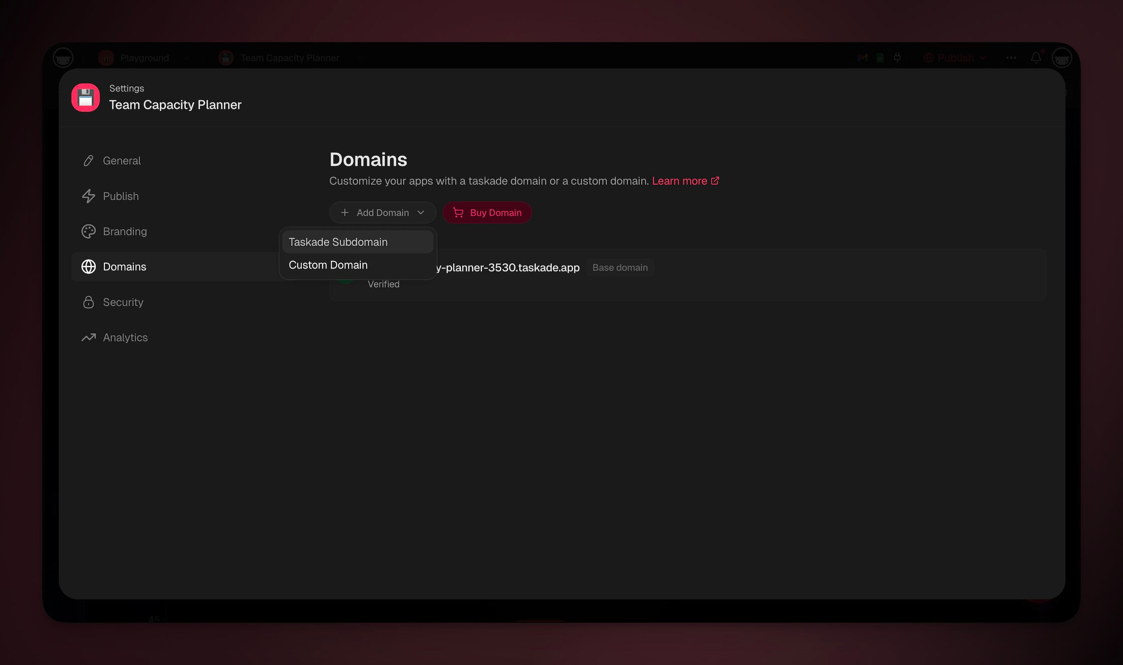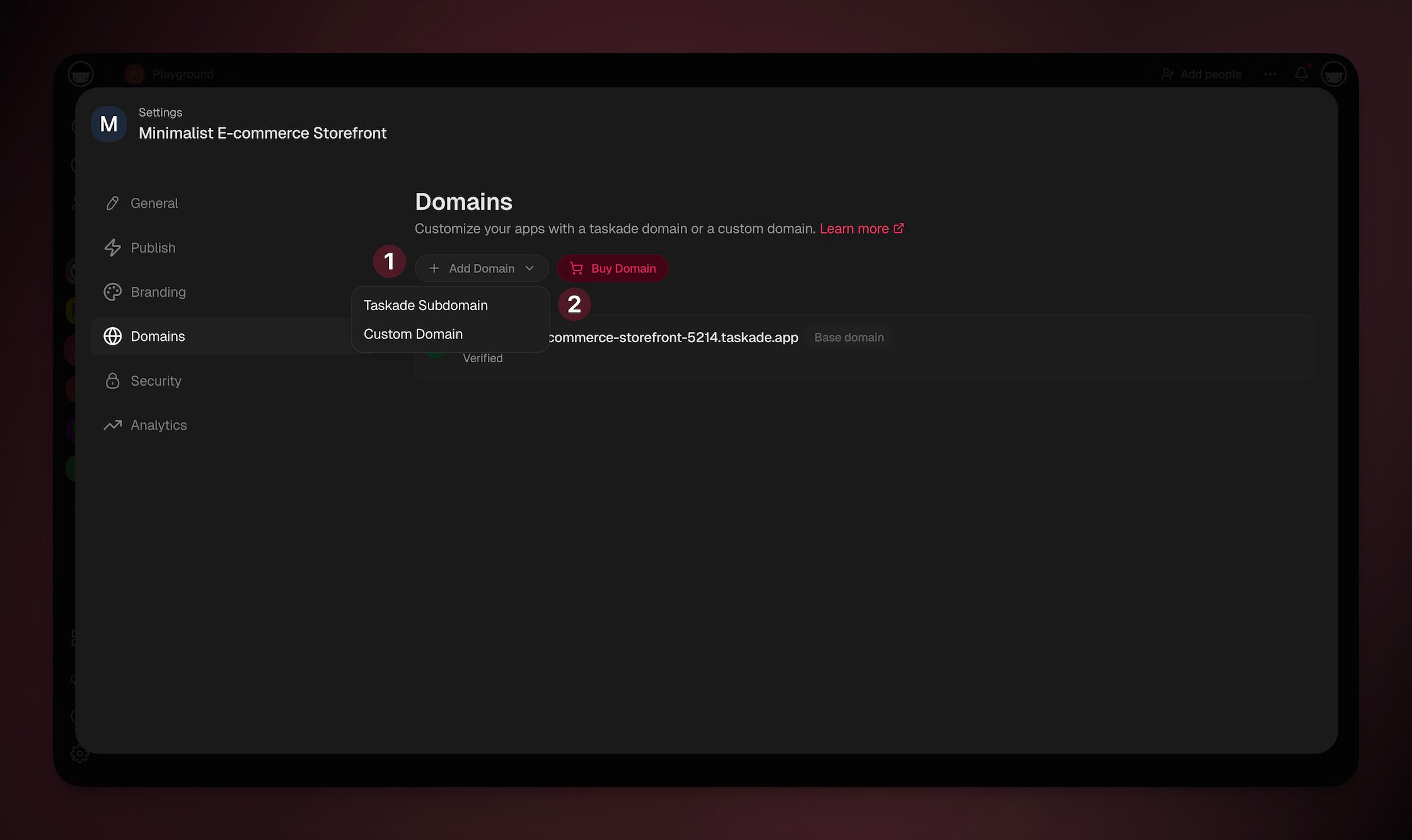 - Under ➕ **Add Domain** choose **Taskade Subdomain**.