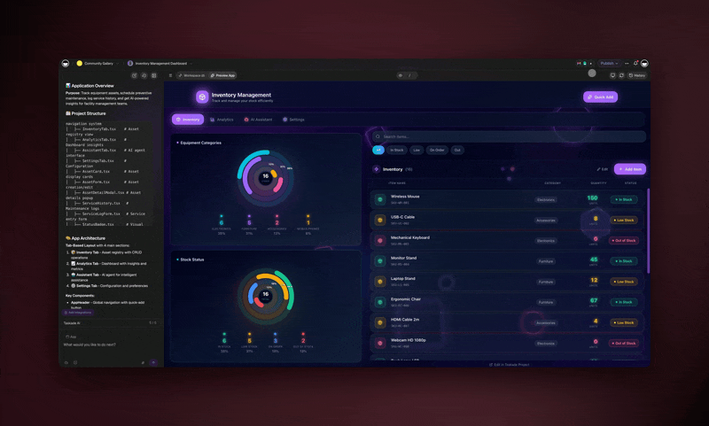 | Published Taskade Genesis Apps | Share your Genesis-generated applications with branded URLs. Perfect for client portals, booking systems, dashboards, or any custom business apps you've built with Taskade Genesis AI. | ``` |