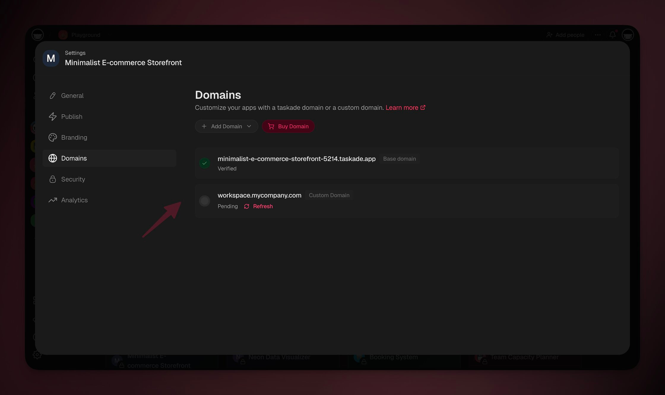 7. Refresh the domain status inside Taskade.