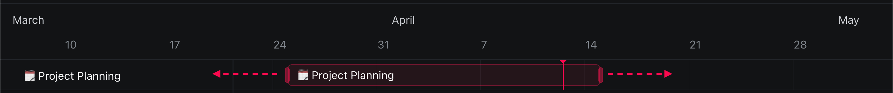 Adjust duration: Hover the mouse cursor over the edges of a task in the timeline. When you see the cursor change, click and drag the edges to adjust duration.