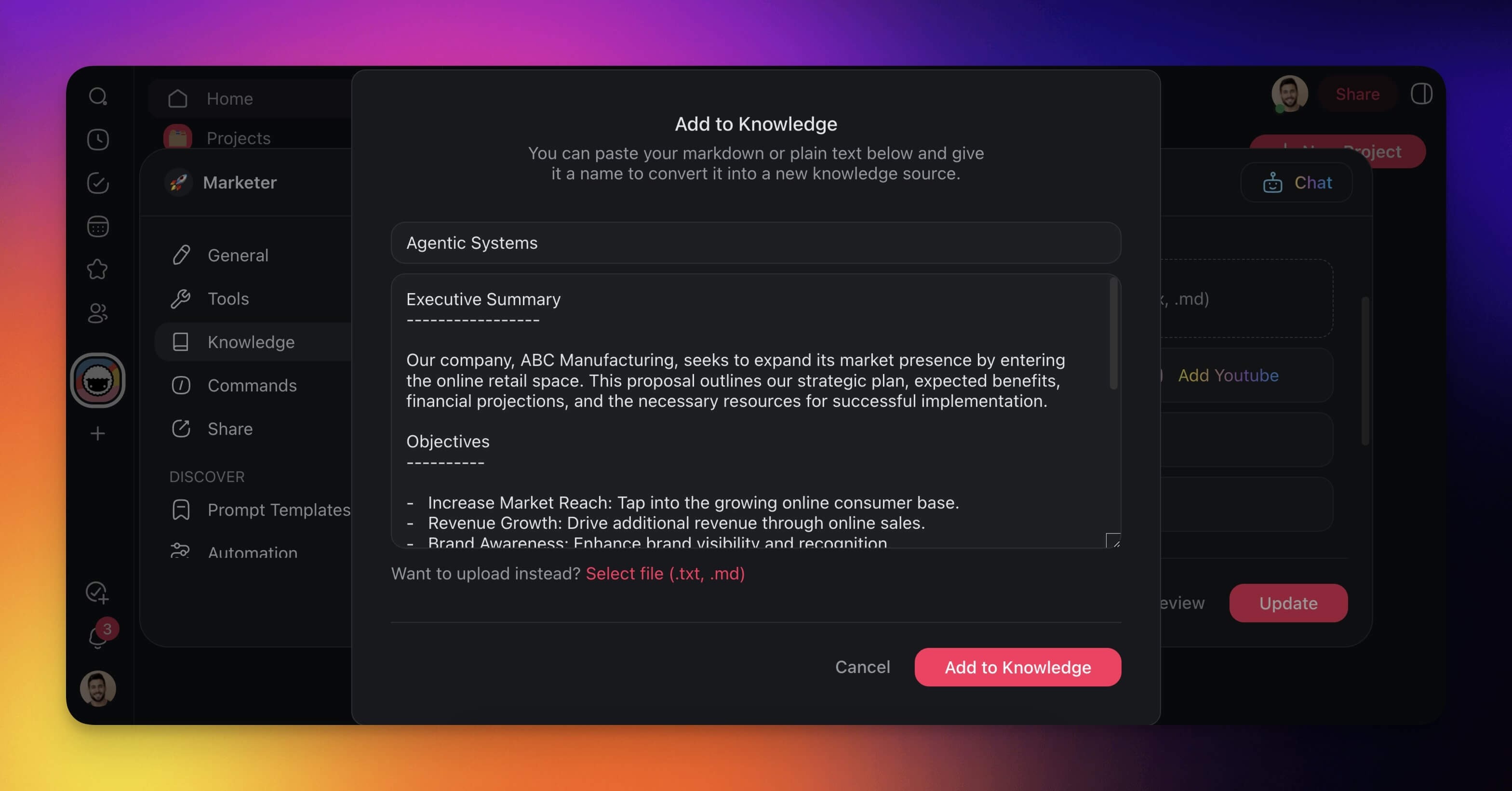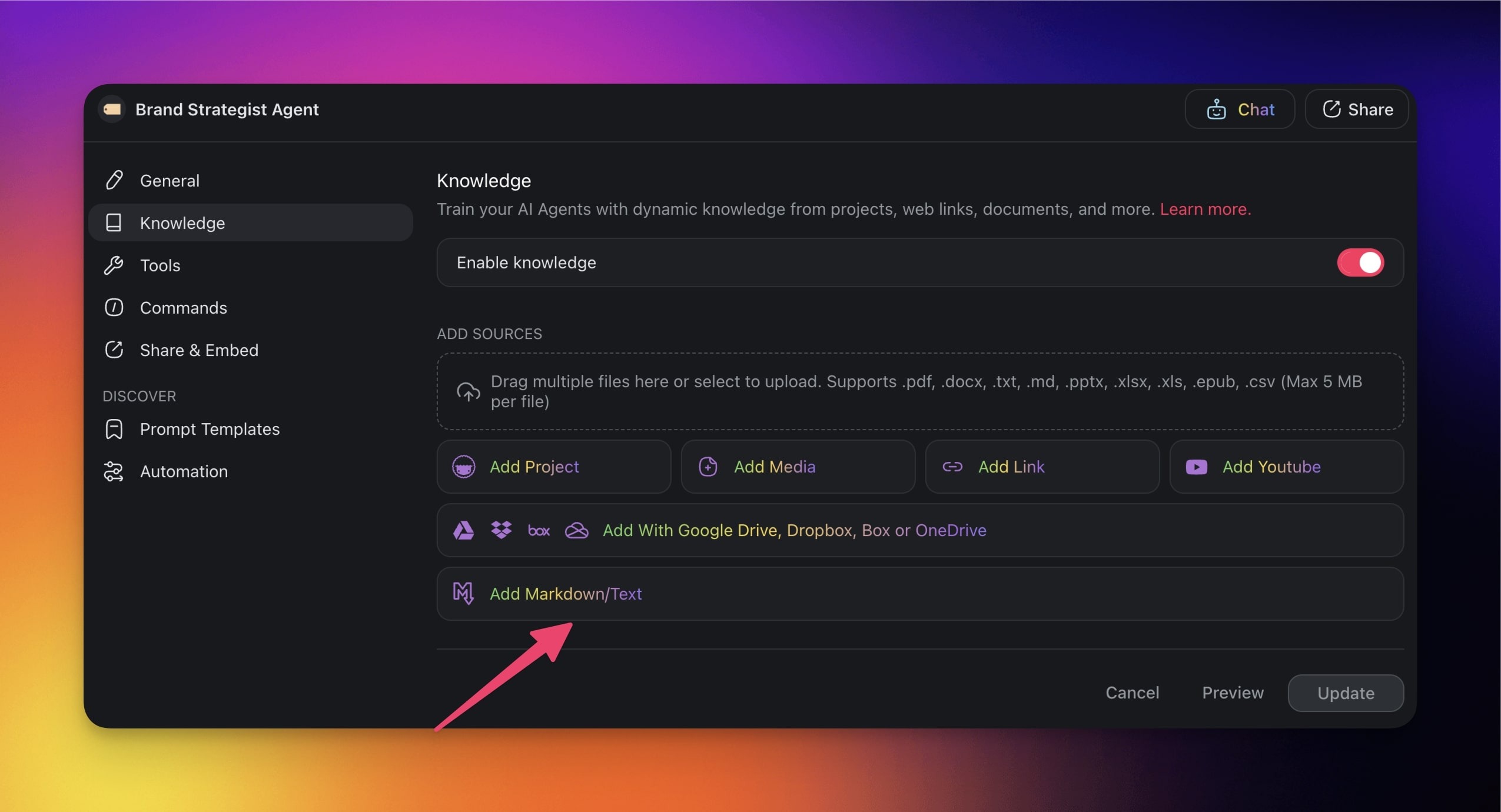 Add Markdown to Agent Knowledge