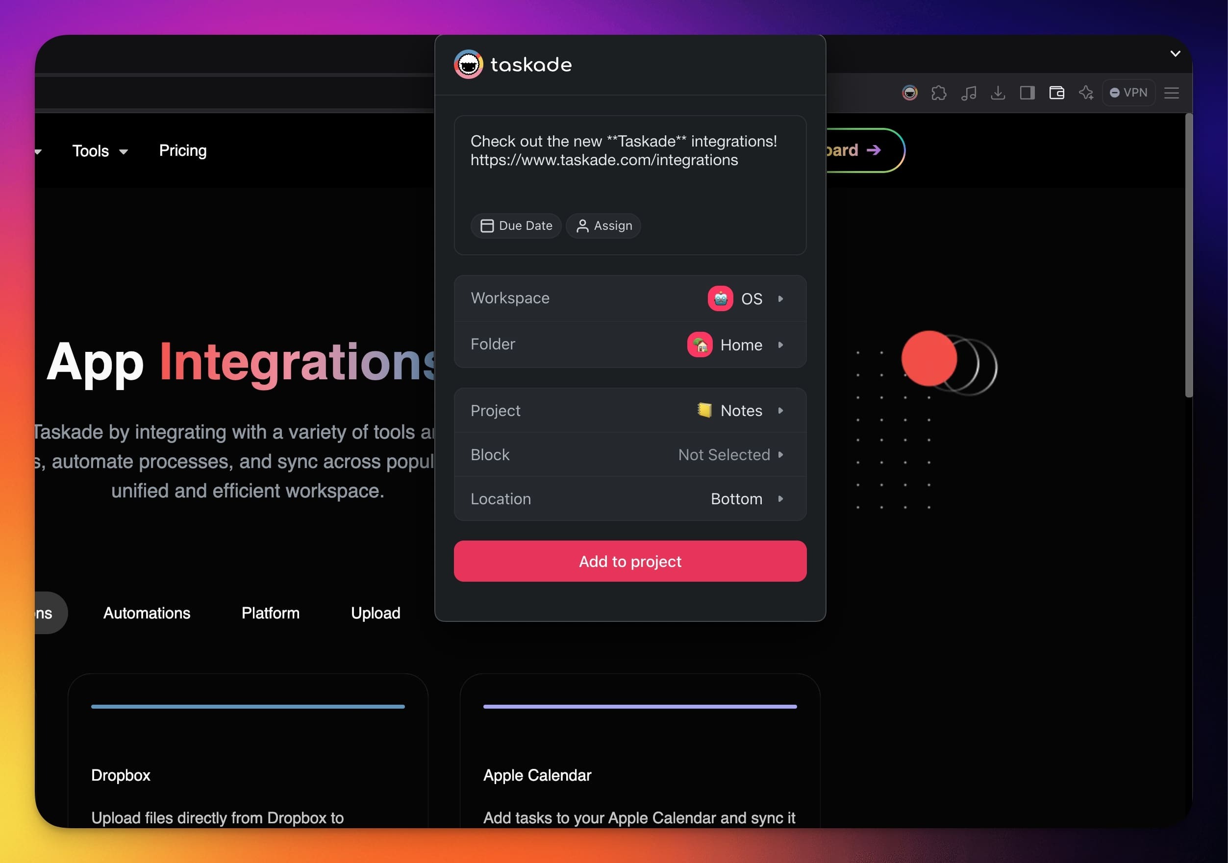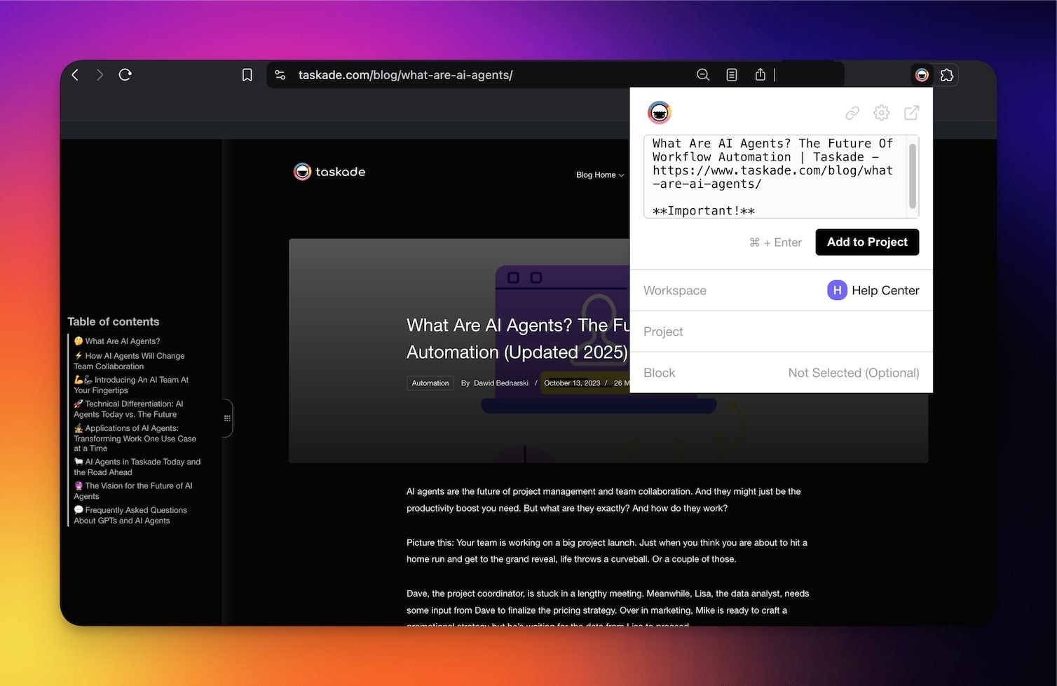 - Open the Taskade Quick Add Widget.
