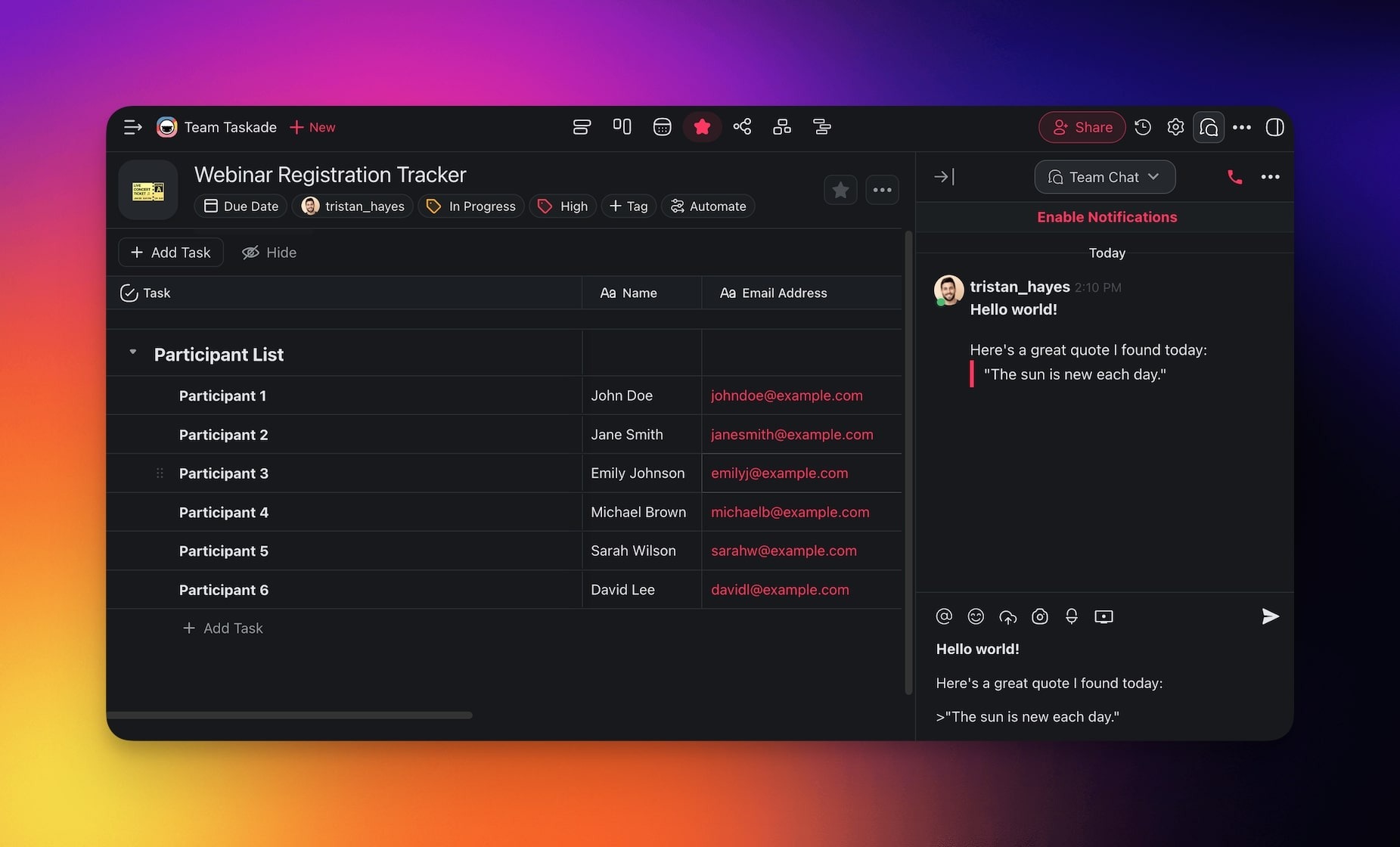 - Taskade will display your text accordingly.