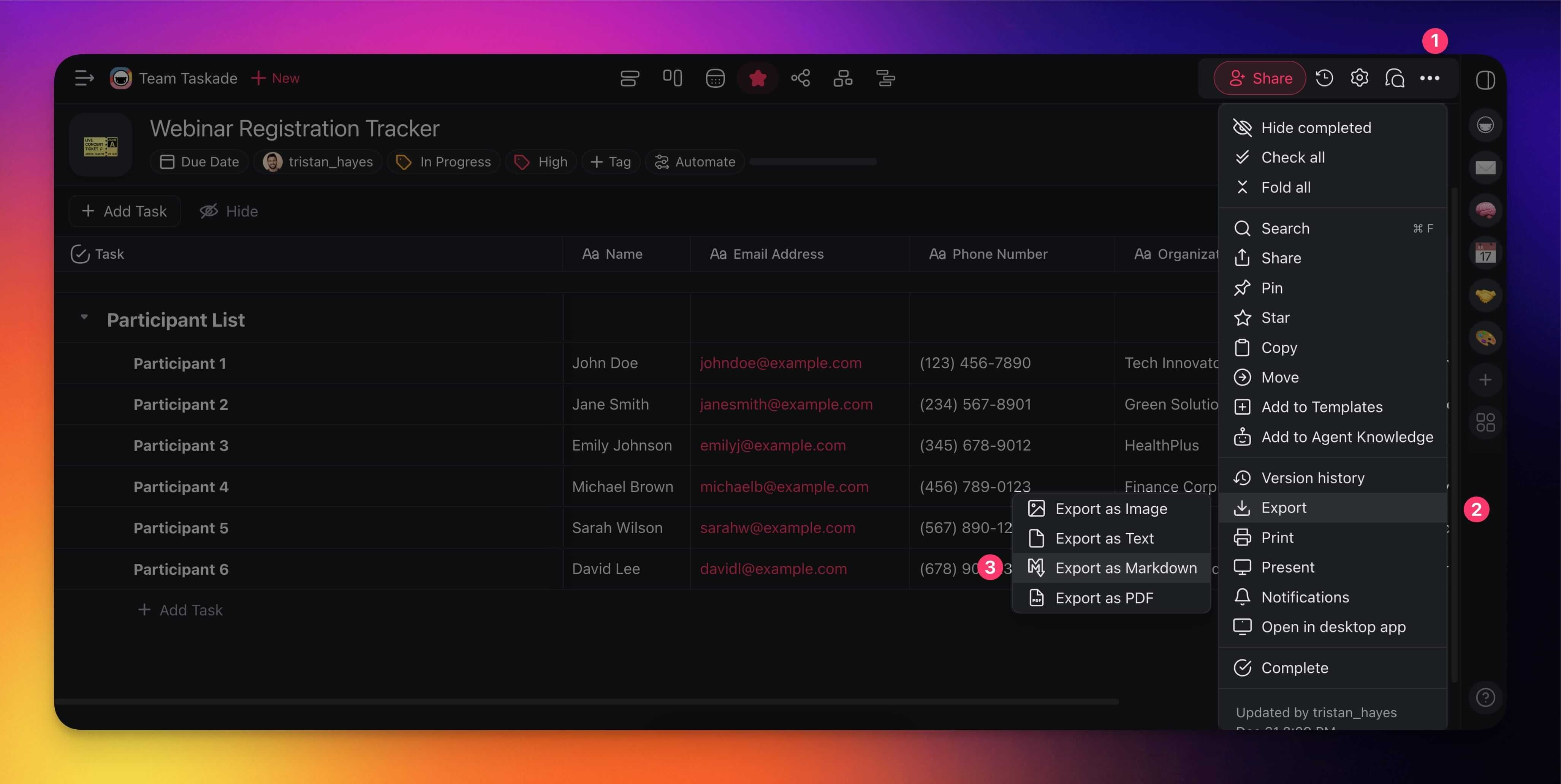 - Select 📤 Export and choose ⌨️ Markdown.