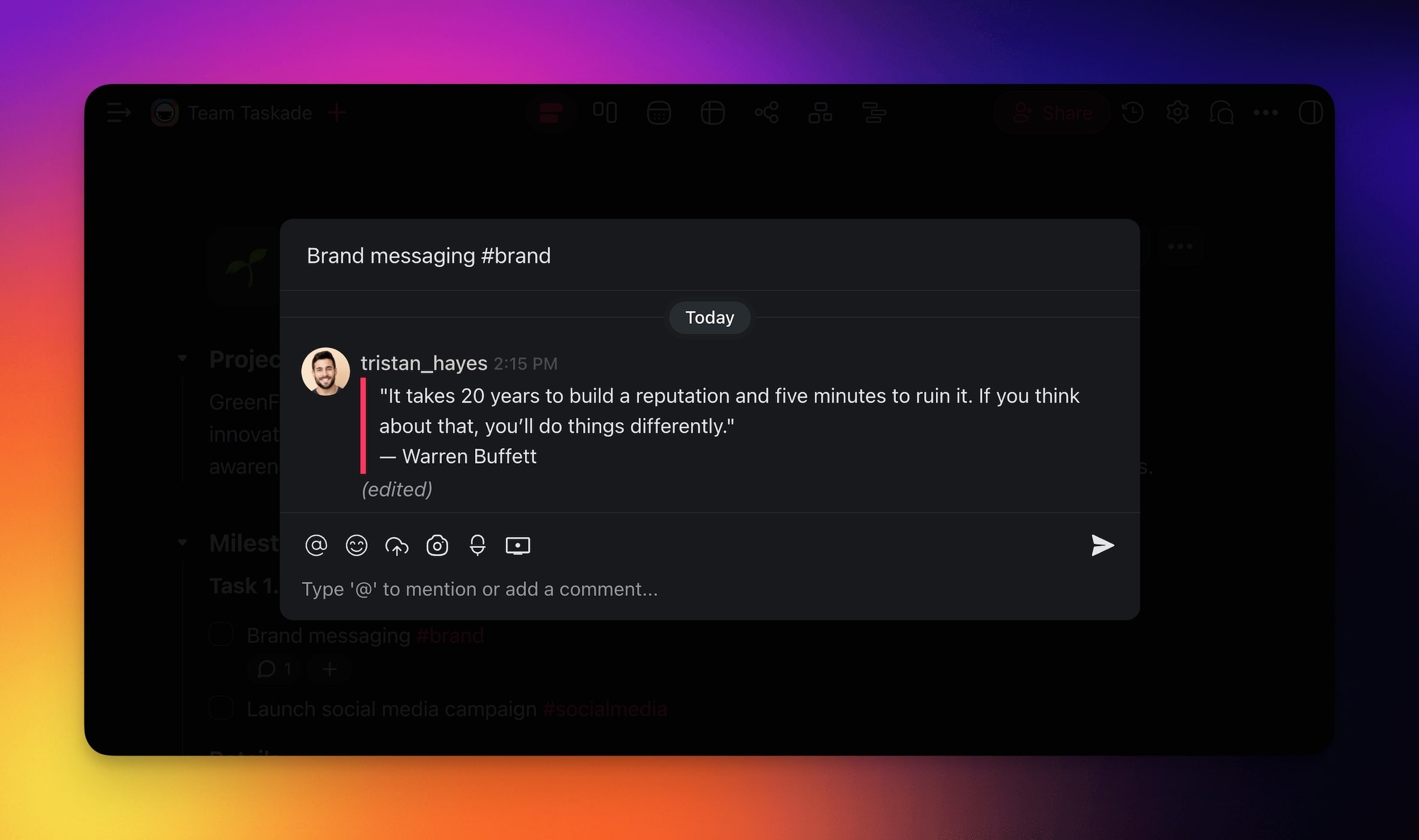 - Chat and comments to communicate with your team.