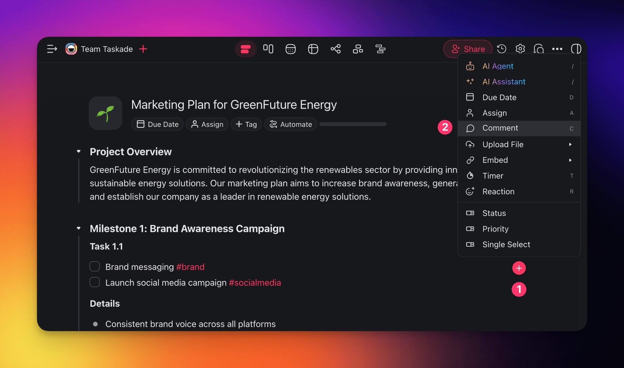 - Project editor to format tasks, checklists, and paragraphs.
