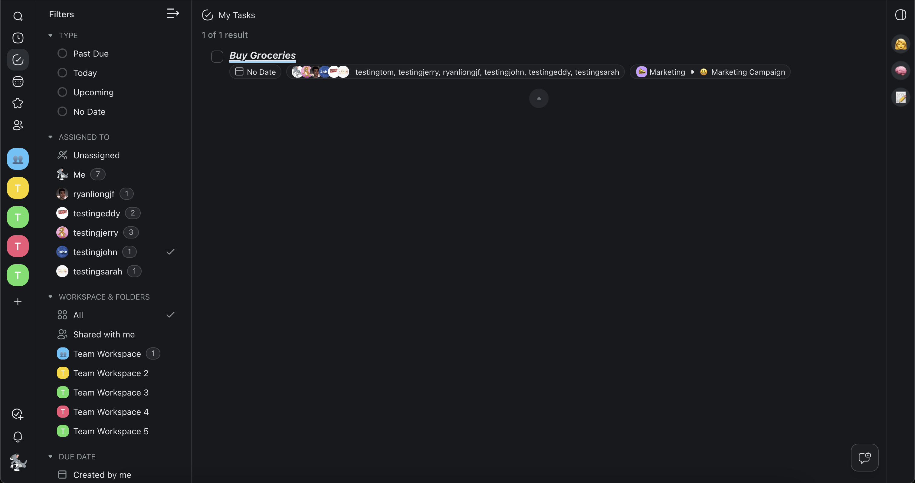 My Tasks is an account-wide dashboard that compiles your tasks across all projects, folders, and workspaces in a single screen.