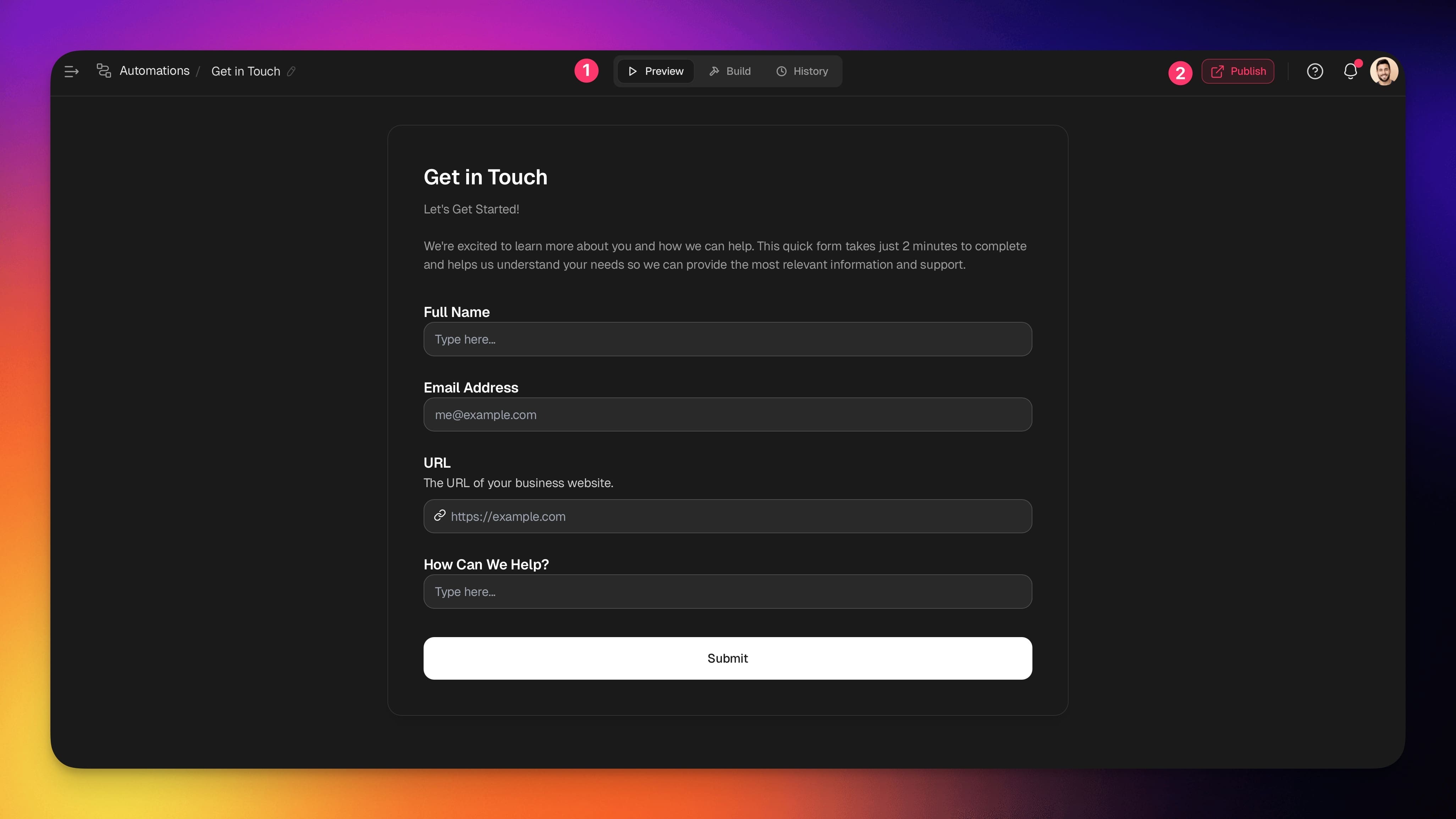 - Open the automation containing the form.