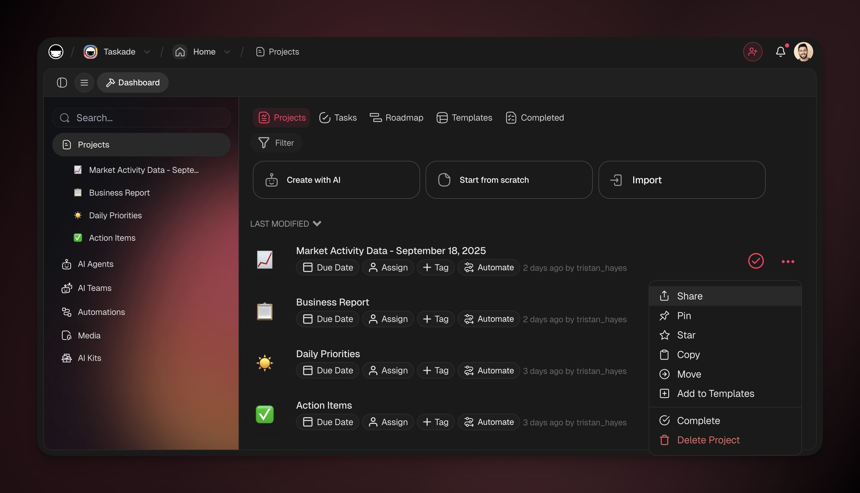 - Click the t hree dots ยทยทยท next to a project โ Share.