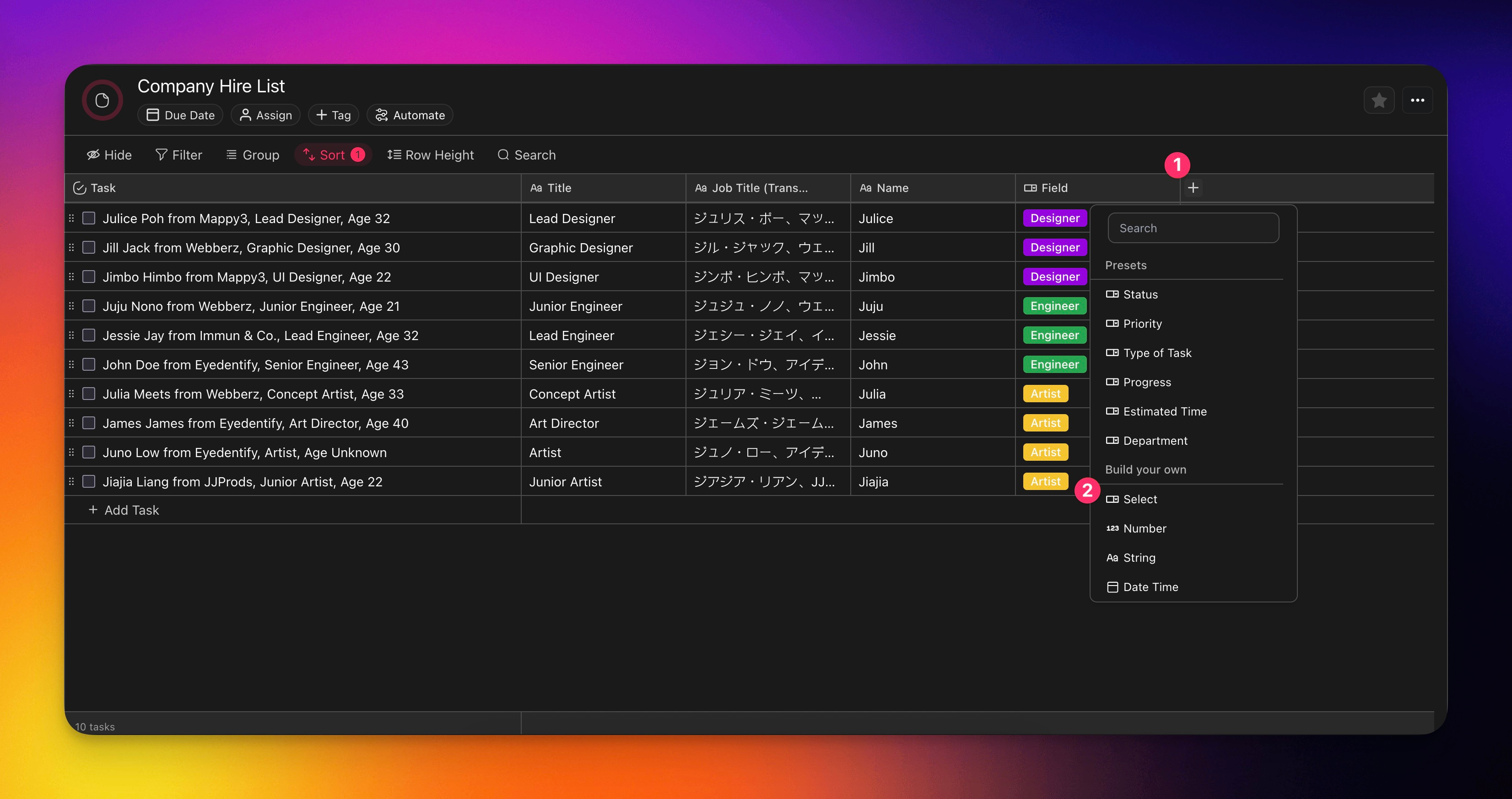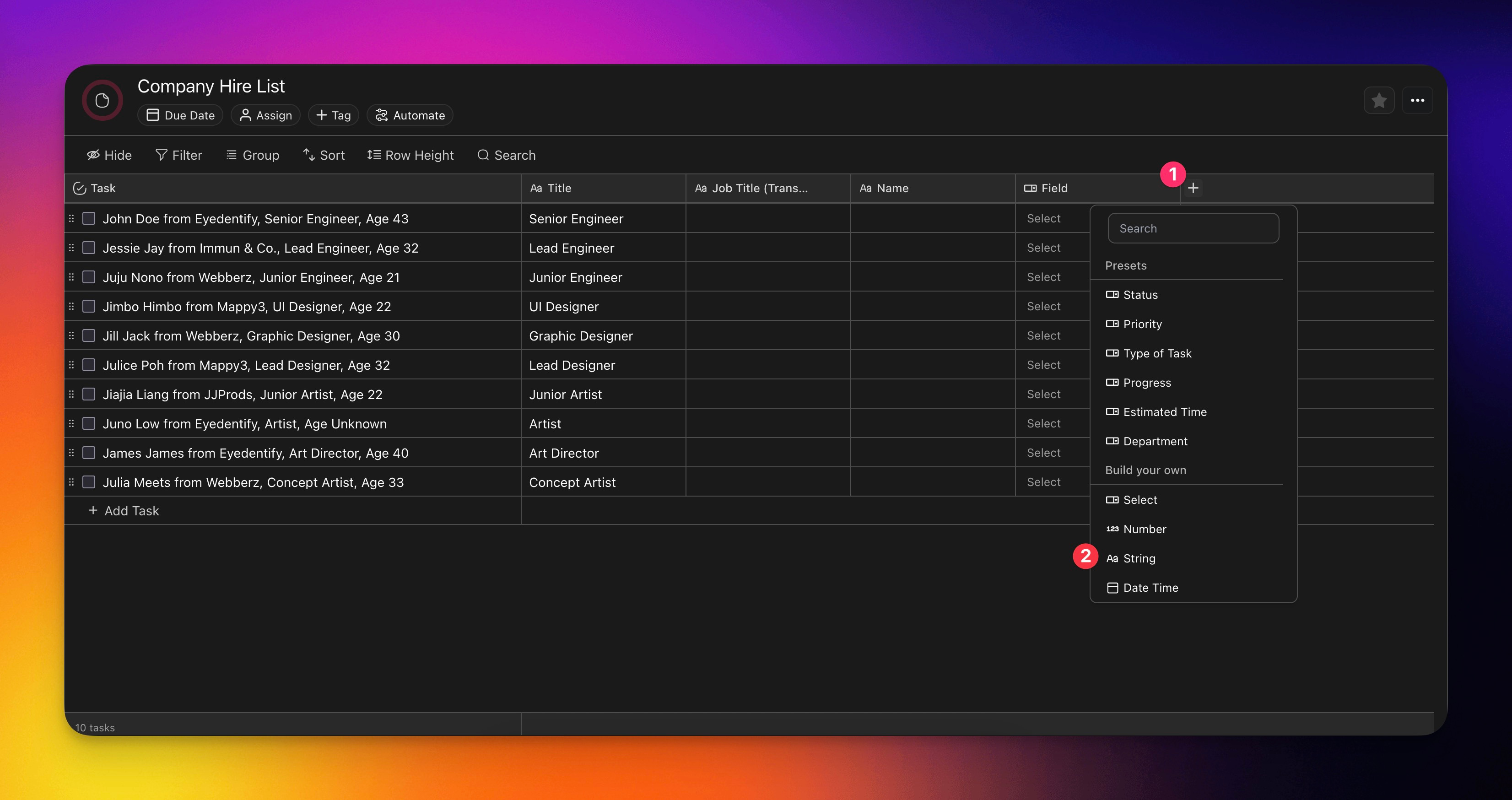 💡 You may also use an existing project in the Table View. Just note that you will need a String Field or a Select Field to fully try out the Fill with AI features.