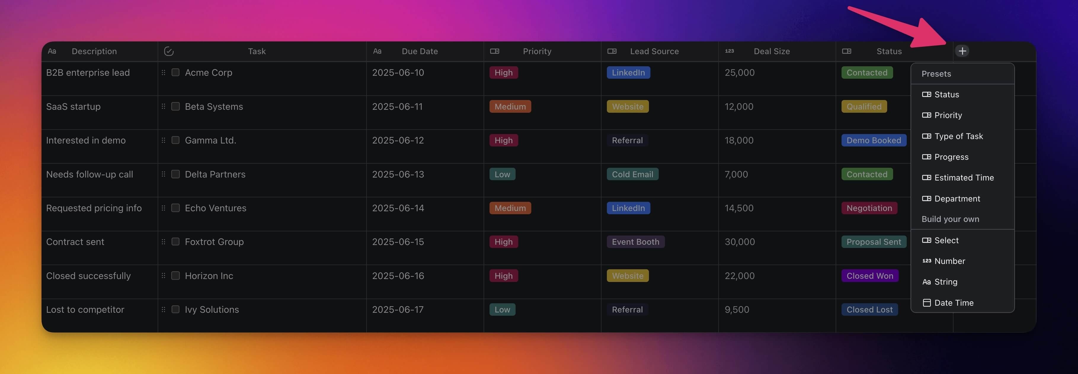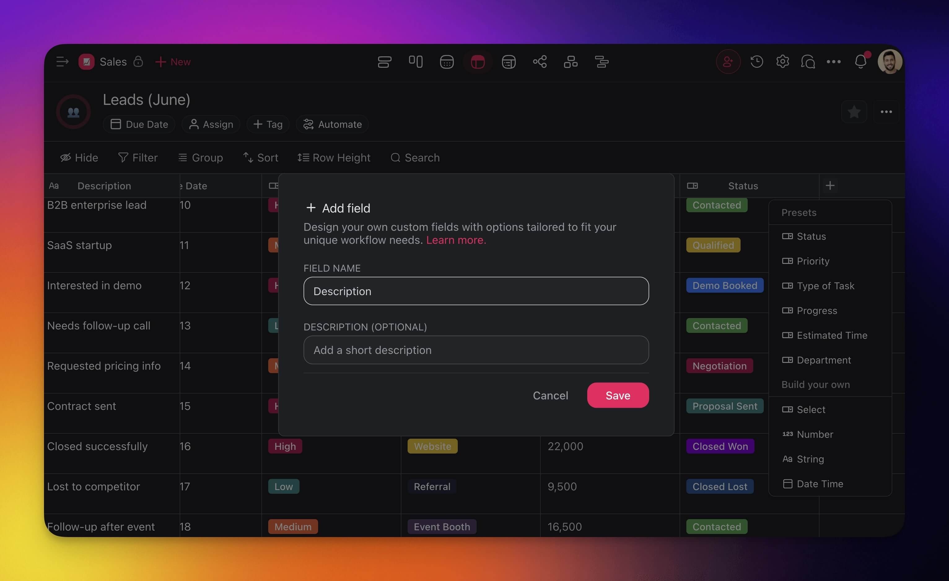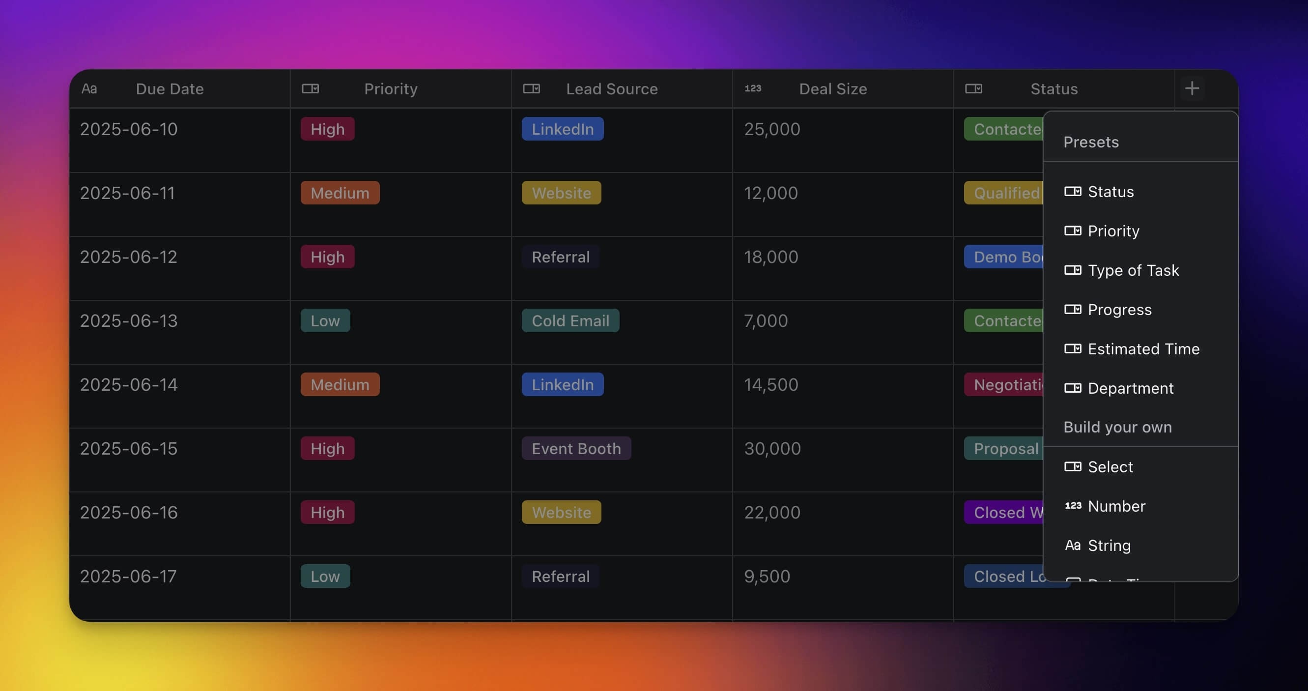 Presets offer pre-defined field types to help you organize your work more effectively. Each preset is fully customizable to match the needs of your project.