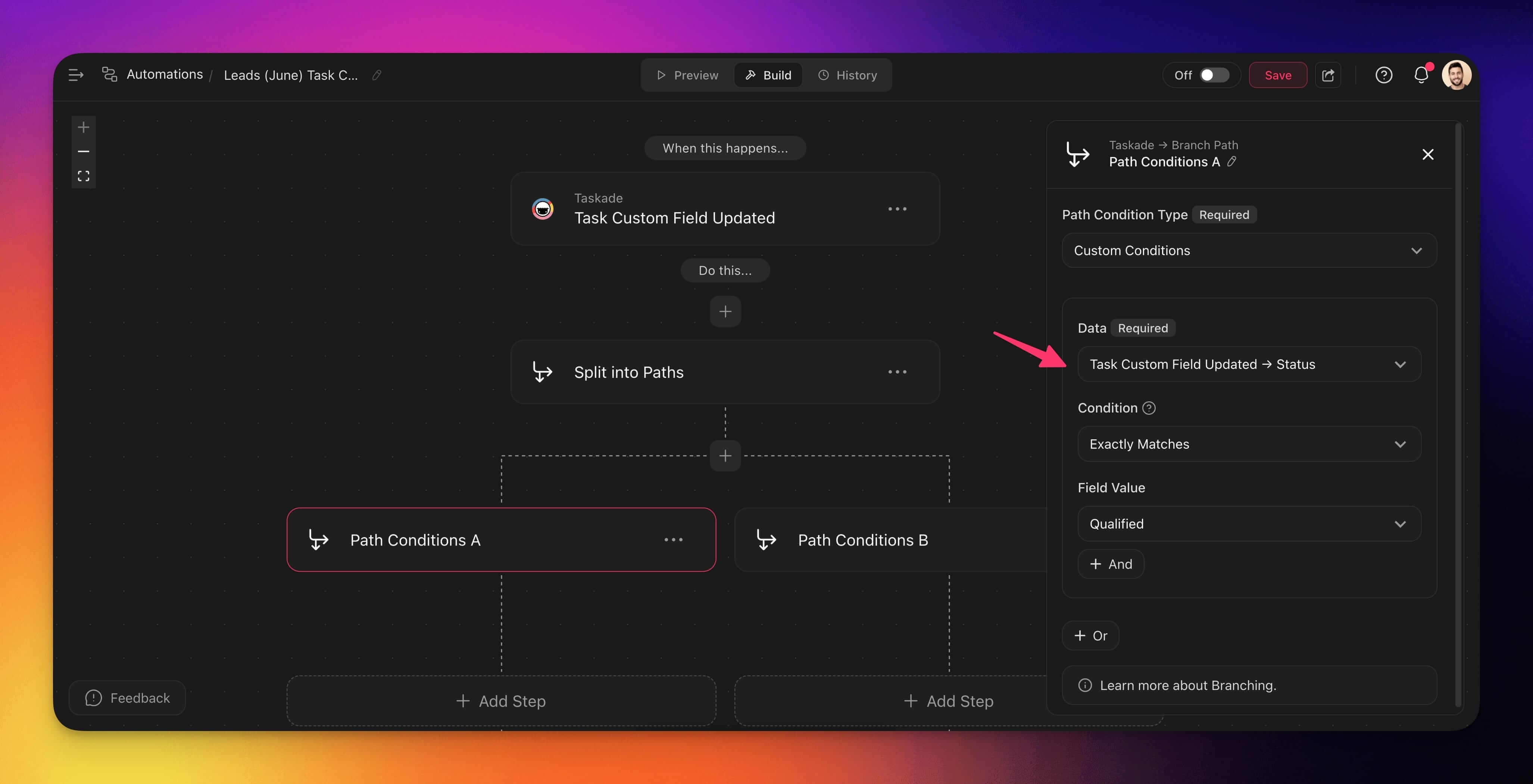 In the automation creator: