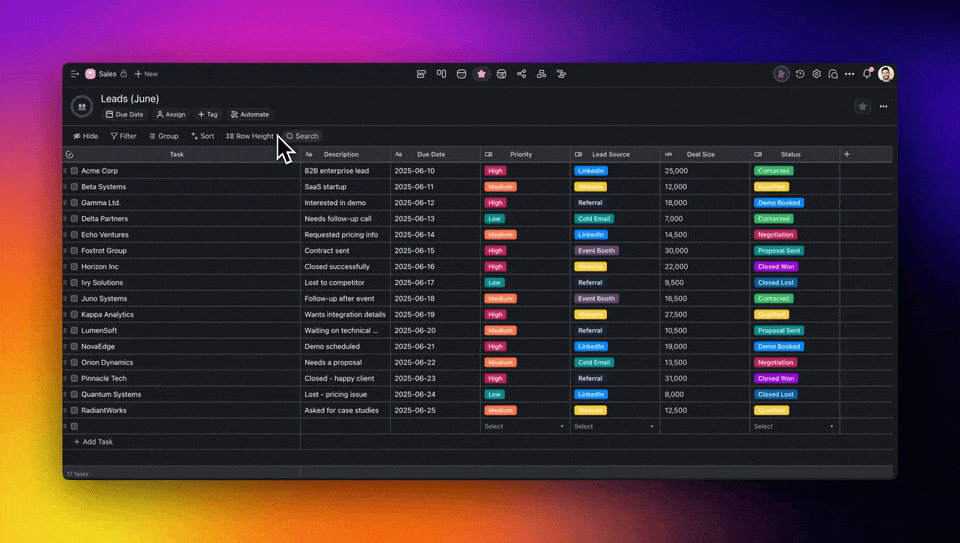 ๐ก Note: Table presets work across views, including Lists and Boards.