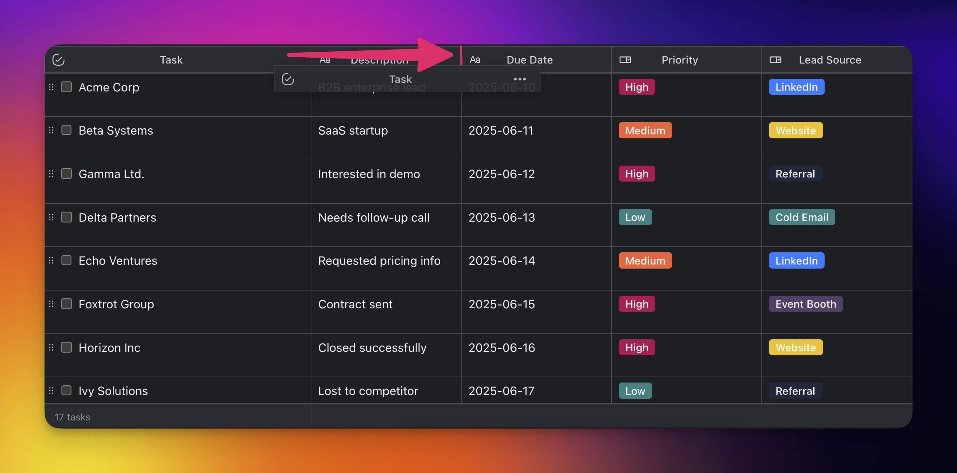 | Created Date | Show when the task was first created. |