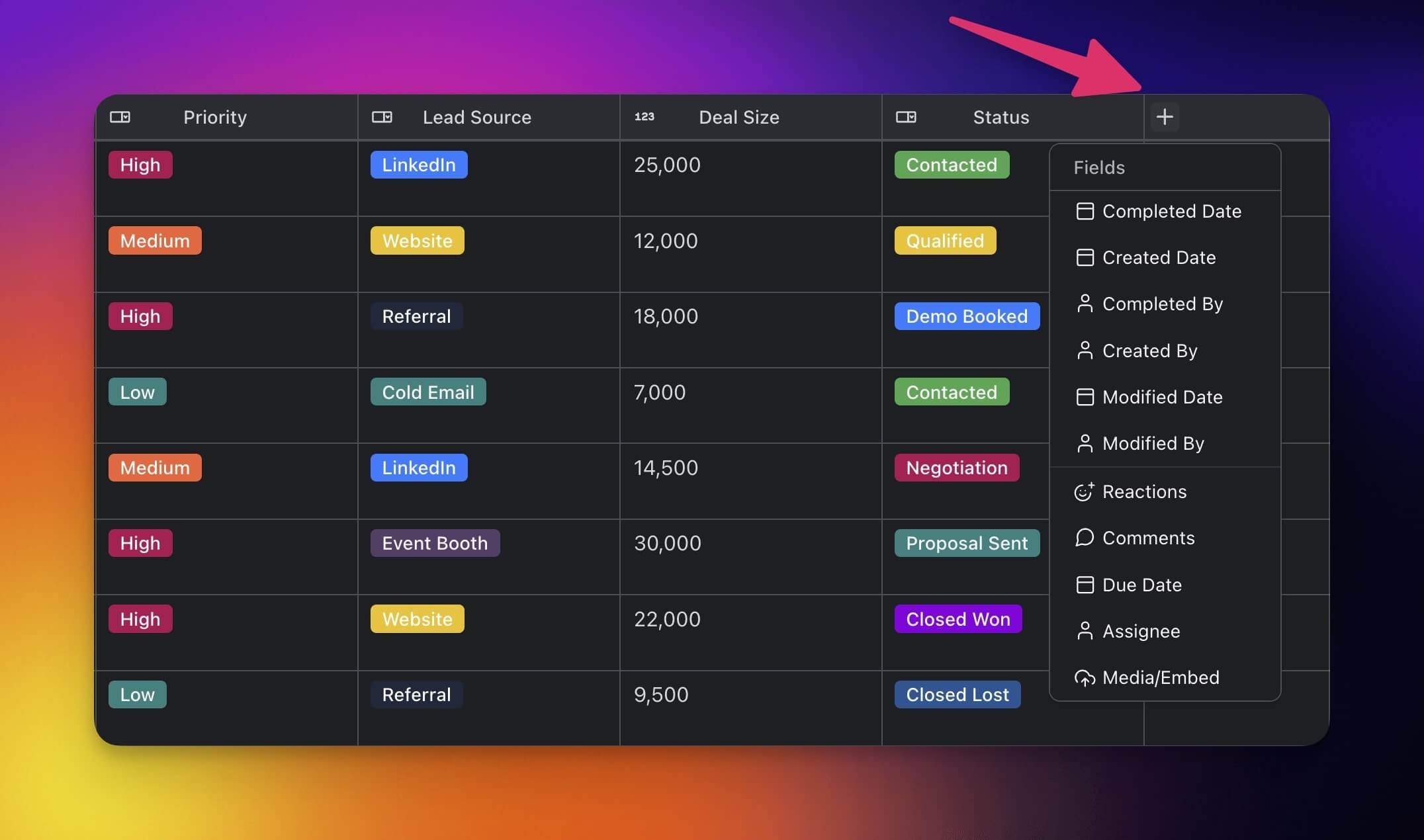 Customize your Table view experience by creating fields tailored to your needs.