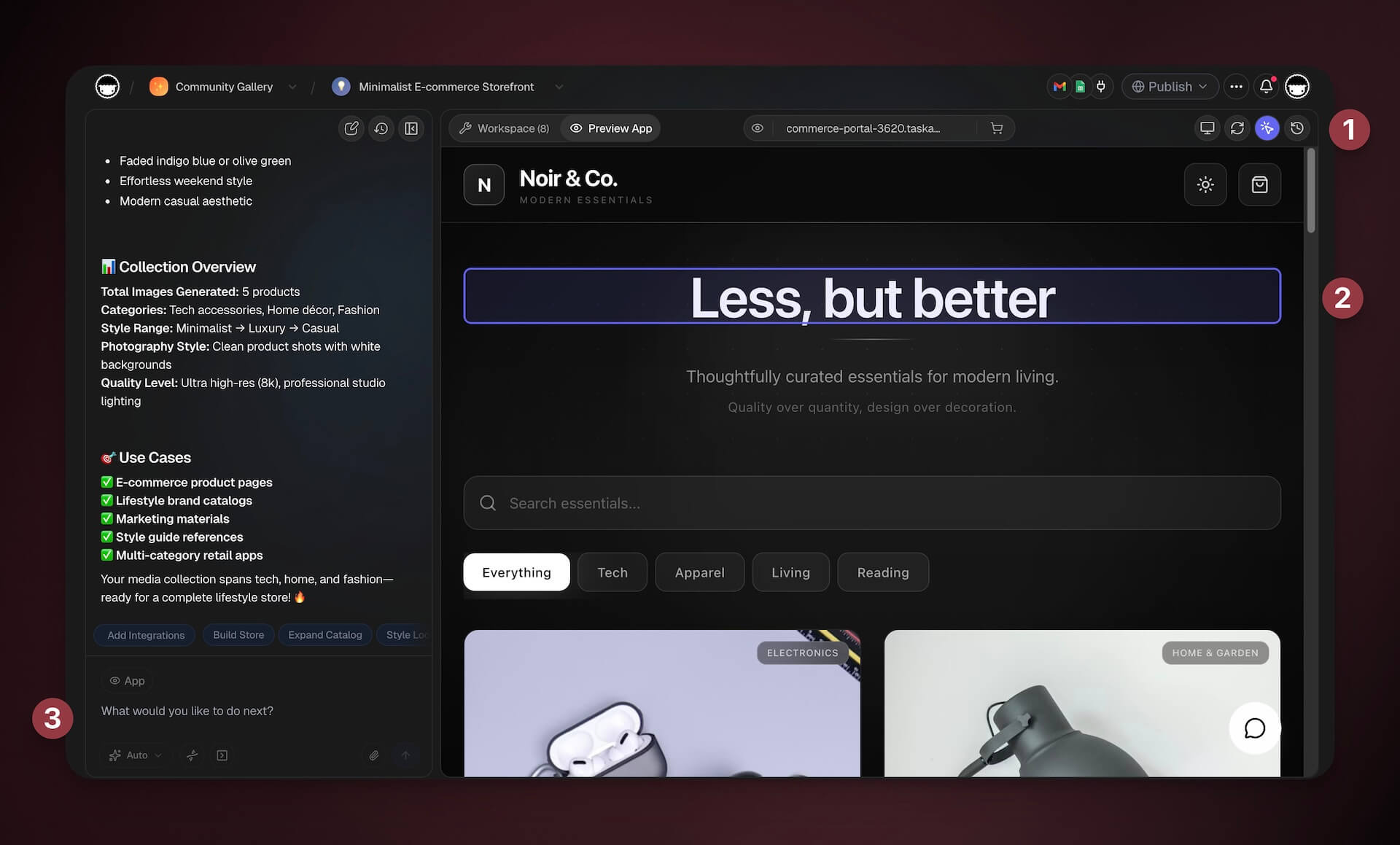 - Preview Tab: In the App preview, the Agent can modify your app and connect automations and projects to it. All you need to do is ask it to do so.