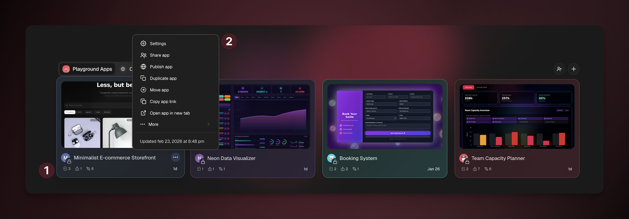 - Prompt Library: Access pre-built prompt templates for common app types.